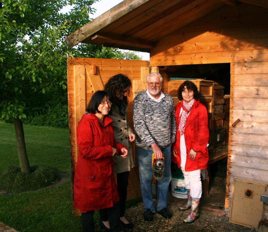 Die beiden Kreisvorsitzenden aus Kelheim und Landshut, Johanna Werner-Muggendorfer, MdL und Ruth Müller waren gemeinsam mit SPD-Mitgliedern aus der Region im weitläufigen Garten von Klaus Hexel, dem passionierten Hobby-Imker zu Gast. „Normalerweise summt es hier um diese Jahreszeit“ – aber am heutigen Regentag verlassen die Bienen ihren Stock nicht, so Hexel, der vor fünf Jahren mit dem imkern begonnen hat. Der Zusammenhalt unter den Imkern sei hervorragend und ein „Jung-Imker“ werde von den anderen Vereinsmitgliedern gerne unterstützt und aufgenommen. Diese Sichtweise konnte auch Imker Konrad Schlemmer bestätigen, denn hier gebe es kein Konkurrenzdenken.