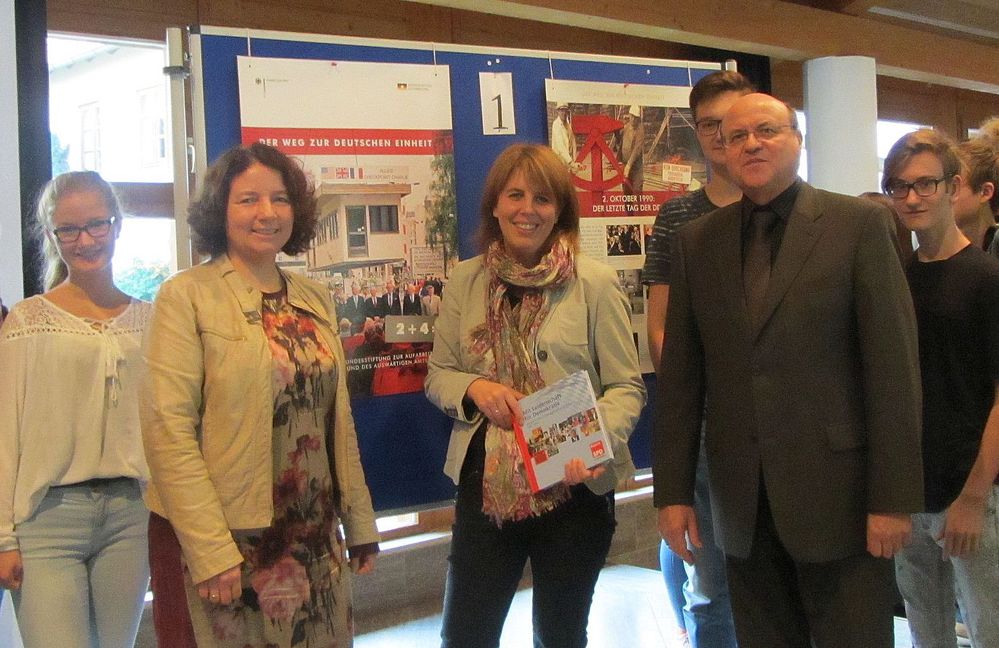 Schüler der Q11 mit MdL Ruth Müller, Yvonne Löken und Stadtrat Ludwig Zellner (von links)Ausstellung „Weg zur deutschen Einheit“ eröffnet