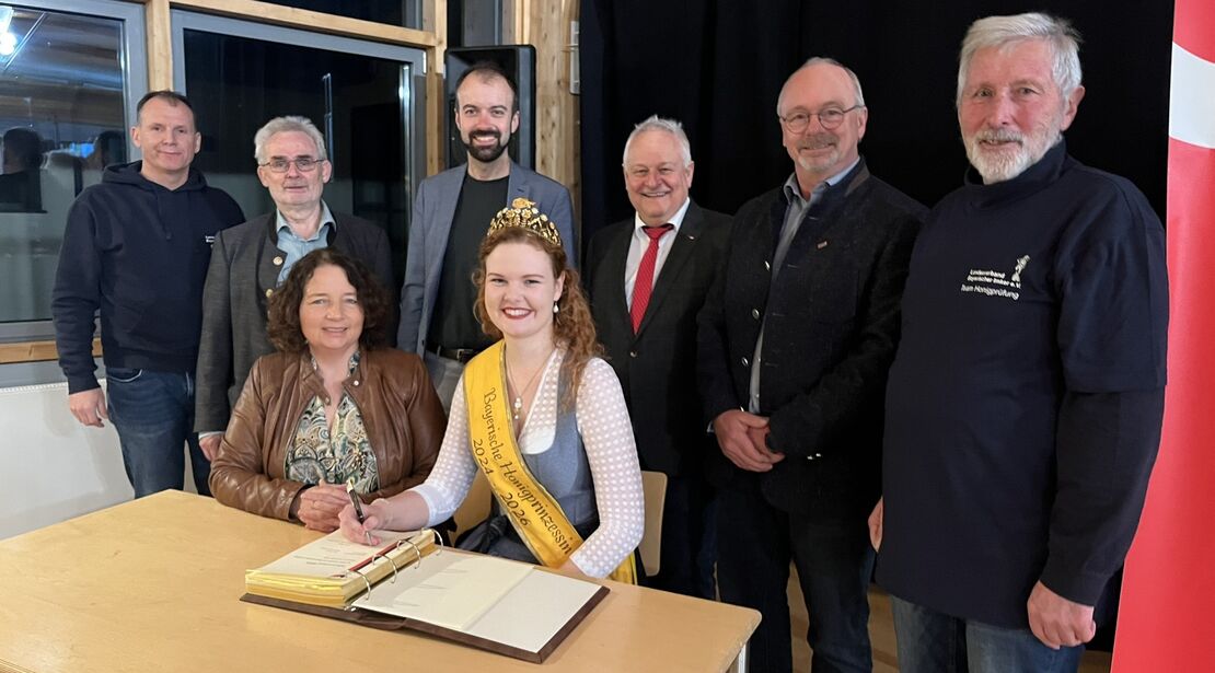 Nicht oft kommt königlicher Besuch in die Marktgemeinde Altdorf. So war es für imkereipolitische Sprecherin der SPD-Landtagsfraktion, Ruth Müller, und Bürgermeister Sebastian Stanglmeier eine besondere Ehre, zum Imkerempfang der SPD-Landtagsfraktion auch die Bayerische Honigprinzessin Anja Bürzer begrüßen zu können. Die königliche Hoheit hinterließ nicht nur einen sehr positiven Eindruck bei den Imkerinnen und Imkern, die sie für ihre wichtige ehrenamtliche Arbeit lobte, sondern verewigte sich auch im Goldenen Buch der Marktgemeinde Altdorf. „Das Zusammenkommen bei solchen Terminen, der persönliche Austausch ist eben auch im digitalen Zeitalter durch Nichts zu ersetzen“, betonte Ruth Müller.