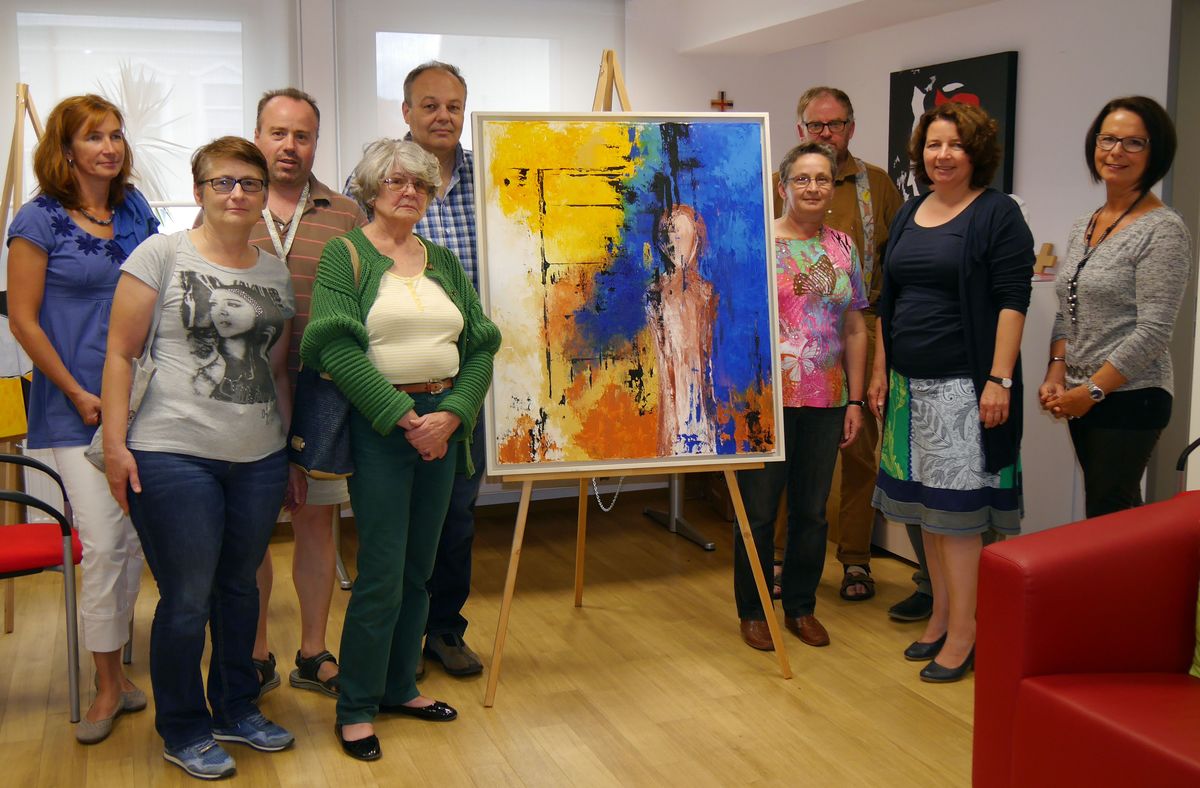 Bei vier „Künstler-Cafés“ waren Vereine und Institutionen aus Landshut im Bürgerbüro zu Gast, um mit der Johanniskirchener Künstlerin Maria Nistl und der Politikerin Ruth Müller über Kunst und Politik zu diskutieren. Maria Nistl führte am Montag die letzte Gruppe durch die Ausstellung, die 19 Bilder umfasst und in den Büroräumen der Abgeordneten anzusehen sind. Die Besuchergruppe des „Landshuter Netzwerks“ lauschte interessiert den Ausführungen der Künstlerin zur Malweise und zur Entstehung der Bilder. Durch die Spachteltechnik entstehen oft kleine Details in den Kunstwerken, die erst beim näheren Betrachten auffallen. „Meine Gefühle und Gedanken finden sich in den Bildern wieder“, so Maria Nistl. Und sie riet den Besuchern, die teilweise selbst kreativ tätig sind, ein Bild auch einmal liegen zu lassen, um sich bei einer neuen Betrachtung wieder neu darauf einzulassen und das zu ergänzen, was bisher noch gefehlt hat. Charakteristisch für ihre Werke sind eine vielschichtige Spachteltechnik und das Entdecken von versteckten Gesichtern, die sich je nach Licht und Perspektive in ihren Bildern finden lassen.