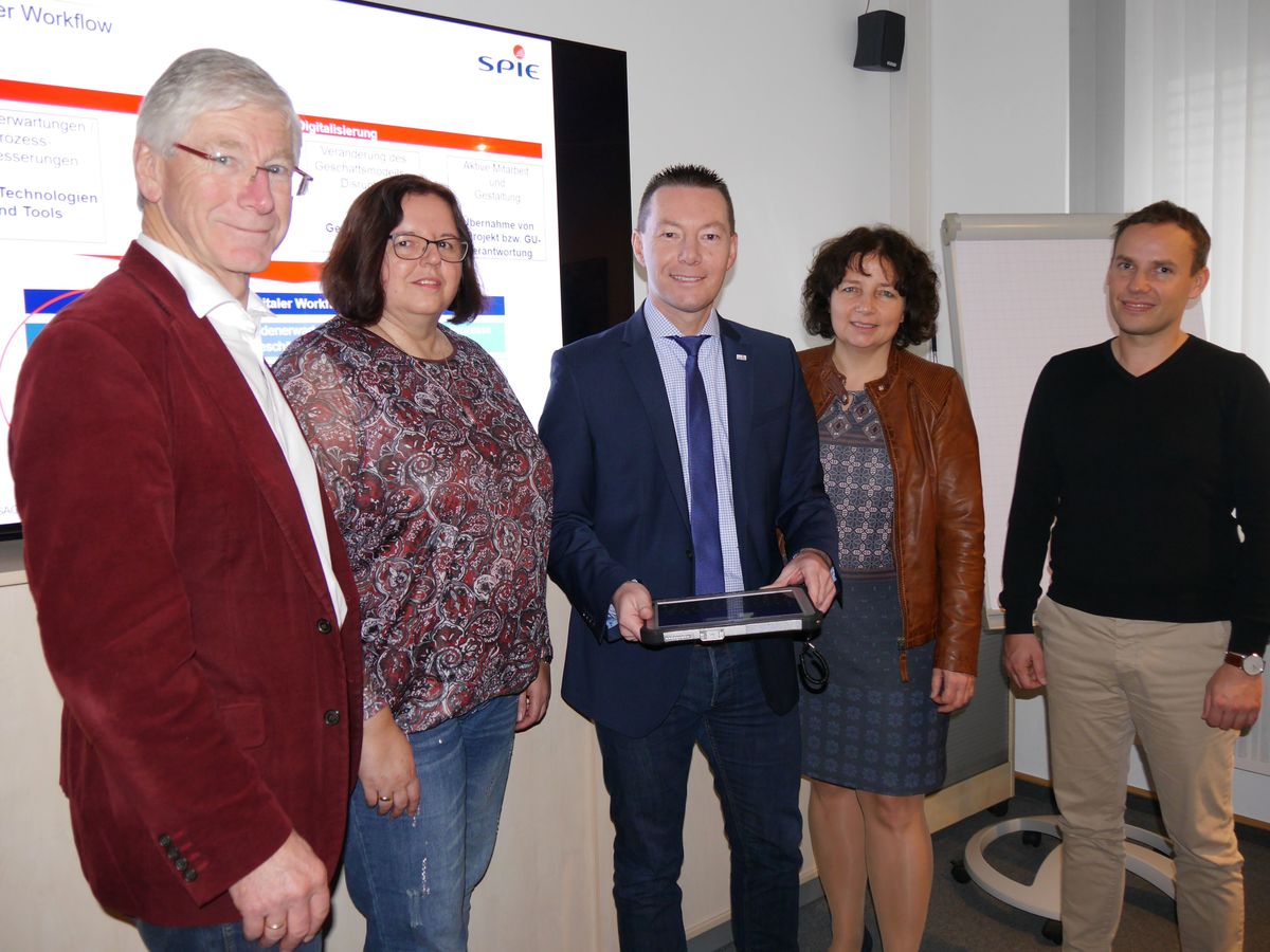 Die SPIE SAG unternimmt viel, um ihre Mitarbeiter und deren Arbeitsabläufe auf den aktuellen Stand der Technik zu bringen und zu halten. „Durch die Digitalisierung benötigen wir nicht weniger Mitarbeiter, sondern mehr“ kommentiert Markus Kopp. So wurden für den Bereich Planung von Glasfasernetzen 40 neue Mitarbeiter eingestellt und geschult – alles Quereinsteiger mit und ohne technischen Hintergrund. Das Unternehmen wirkt so dem Fachkräftemangel entgegen – mit Erfolg. 75 Prozent aller neu eingestellten Mitarbeiter kommen aus fachfremden Branchen, auch einige Asylbewerber wurden bereits erfolgreich in die Unternehmenskultur mit ihren flachen Hierarchien integriert. „Man muss den Leuten eine Chance geben“, so Markus Kopp für den Motivation und Einstellung mehr zählen als ein polierter Lebenslauf.