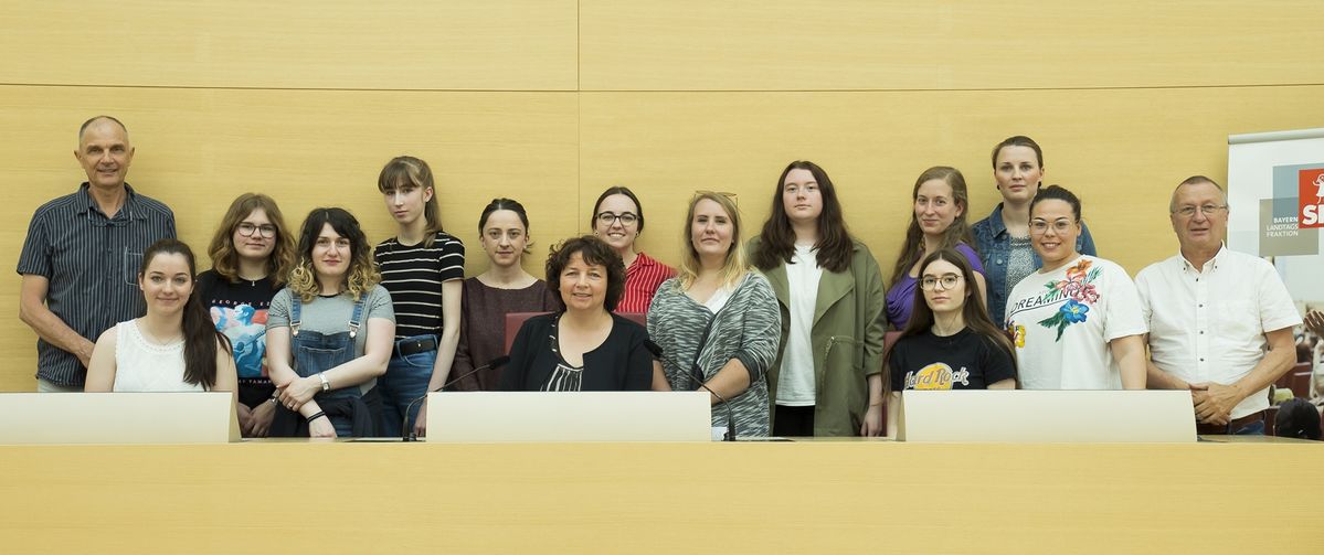 Aus Landshut durften 18 Schülerinnen der Berufsschule 1 aus dem Fachbereich Gastronomie auf Einladung von Ruth Müller im Landtag anreisen. Die Mädchen wurden an diesem politischen Praxistag ganztätig von der Abgeordneten betreut und gecoacht. Begleitet wurden die Mädchen von den Fachbetreuern Gastronomie, Franz Einsiedler und Harald Mößle, die sich freuten, ihren Schülerinnen die Teilnahme an so einer besonderen Erfahrung möglich zu machen: „Eine tolle Gelegenheit für meine Schülerinnen mal abseits vom theoretischen Unterricht erfahren zu dürfen wie es sich anfühlt vor einer großen Öffentlichkeit für seine Meinung einzustehen und dafür zu kämpfen“, so Franz Einsiedler.“ Und Harald Mößle ergänzte, dass dieser Politiktag sehr anschaulich darstelle, wie unsere Demokratie und Meinungsfindung funktioniere.