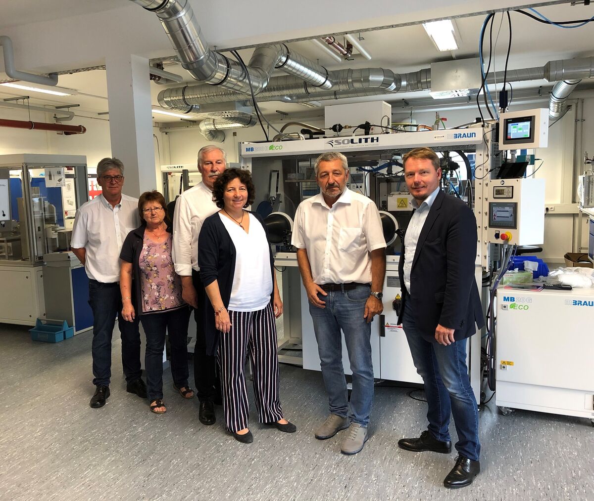 Anschließend führte Schwaiberger die Delegation durch die Anlage und informierte die Abgeordneten über die laufenden Projekte. Insbesondere die Forschungsanlagen, in denen elektrische Energie zur langfristigen Speicherung in Methangas umgewandelt wird (Power2Gas), weckte das Interesse der Politiker. Die Landshuter Abgeordnete Ruth Müller zeigte sich von der umfangreichen Forschung begeistert: „Es ist erstaunlich, was hier auf die Beine gestellt wird. Sei es bei der Batteriezellenforschung oder wenn es darum geht, kurz und langfristige Speichertechnologien zu entwickeln.“ MdL Christian