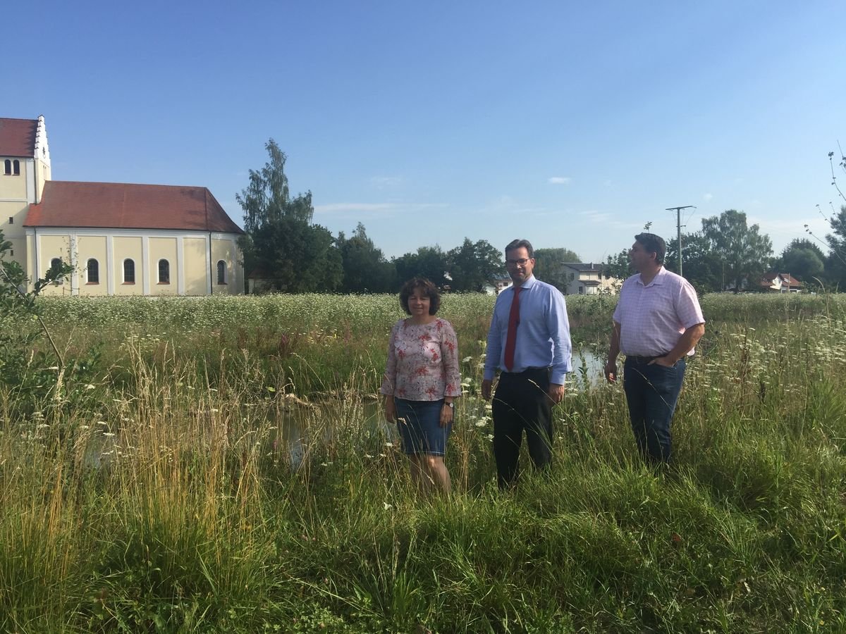 Um die Probleme hinsichtlich Förderrichtlinien und Umsetzung an einem praktischen Beispiel deutlich zu machen, war Bürgermeister Peter Forstner (SPD) mit Bundestagsabgeordneten Florian Pronold und Landtagsabgeordneter Ruth Müller, beide SPD, in Ettenkofen und in Hebramsdorf unterwegs. Beide Ortsteile von Neufahrn waren 2016 vom Starkregen betroffen. In Hebramsdorf ist die Laber bereits mäandert und fließt nun langsamer und kurviger. Das ganze Areal neben dem Radweg ist durch die Aufwertung des Fließgewässers nicht nur optisch attraktiver geworden, sondern dient auch als möglicher Rückhalteraum bei Hochwasser. 11 000 Kubikmeter Erdreich wurden entfernt, die Wasserqualität der Laber stark verbessert. Die Fischer und die Bürger profitieren vom Freizeitwert und die Gemeinde spart sich den Kauf von weiteren Ausgleichsflächen, so Bürgermeister Peter Forstner: „Diese Mäanderung in Hebramsdorf haben wir als Kommune selbst finanziert, dadurch konnten wir Punkte für unser Ökokonto sammeln.“ Rund 120 000 Euro hat die Maßnahme gekostet, ganz ohne Förderung. Für die Starkregen- und Hochwasserschutzmaßnahme in Ettenkofen aber möchte die Gemeinde gerne Fördergelder erhalten, schließlich war hierfür eine Menge Landankauf nötig und es geht um einen langfristigen Schutz für die Anwohner im Sinne des Gesamtkonzepts zum Hochwasserschutz. „Ein vereinfachteres Verfahren würde uns sehr helfen“, betonte Forstner und bat die Abgeordneten, sich dafür einzusetzen. „Wir Kommunen wissen schon, was wir tun!“ Die Zusammenarbeit mit dem Wasserwirtschaftsamt laufe gut, so Forstner, doch obwohl die Gemeinde mit dem geplanten Regenrückhaltebecken einen Schutz schafft, kann sie nicht mit Fördermitteln rechnen. Denn die Tiefe des Beckens reicht nicht aus, um einen HK 100 – den Schutz vor einem hundertjährigen Hochwasser – zu liefern. Nun überlegt der Gemeinderat, das Becken noch größer und tiefer zu bauen, muss dann aber bei einer Verdoppelung der Aufnahmefähigkeit auch mit doppelten Baukosten von bis zu 350 000 Euro rechnen. Mehr Gestaltungsfreiraum für die Kommunen sei ein wichtiges Ziel, so MdL Ruth Müller. Der Bund habe für Maßnahmen im Sinne des Klimawandels 100 Millionen Euro mehr zur Verfügung gestellt, doch die Länder rufen die Gelder noch nicht ab, erklärte Florian Pronold, der nicht die Landwirtschaft als Alleinschuldigen für die Schäden bei Starkregen sehen möchte. „Es gibt einen Zusammenhang zwischen der Stärke der Betroffenheit und wie Anbau betrieben wird“, erklärte Pronold mit Blick auf die Hauptthemen Bodenerosion, Gewässerschutz und Umweltbelastung. Nun gehe es darum, gute Beispiele für die Umsetzung von Schutzmaßnahmen in Gemeinden zu finden und die Rahmenbedingungen in der Politik daran anzupassen. „Hier sehe ich vor Ort, wie es läuft“, so Pronold. Auch beim Thema Grundverkauf müsse etwas getan werden. Oft stehen Landwirte, die sich im Sinne des Gewässerschutzes einbringen wollen, vor der Problematik, dass im Falle eines Grundverkaufs Steuerprobleme auf sie zukämen. Diese Einnahmen könnten zum Beispiel in den sozialen Wohnungsbau investiert werden. Die Landwirte hätten doch selbst Interesse daran, Bodenerosion zu vermeiden, meinte Ruth Müller: „Eine gute fachliche Praxis kann auch Starkregenereignisse abmildern.“ Auch hier hat die Gemeinde Neufahrn ein positives Beispiel zu bieten: In Rohrberg sind mehrere Landwirte und auch zwei Betreiber einer Biogasanlage auf die Pflanzalternative zu Mais, die durchwachsene Silphie, umgestiegen. Auf rund 15 Hektar wird diese mehrjährige Pflanze angebaut. Die Folge: weniger Maisanbau. Und das Beste: Die Landwirte benötigen wegen der robusten Pflanze keine Spritzmittel und haben weniger Arbeit bei fast gleichem Ertrag. Denn die durchwachsene Silphie ist eine in Nordamerika beheimatete Pflanzenart aus der Familie der Korbblütler. Sie ist eine ausdauernde und mehrjährige Pflanze, die aufgrund ihrer großen Biomasseproduktion als Energiepflanze angebaut wird. Am Dienstag müssen sich die Gemeinderäte entscheiden, wie viel Geld für das Rückhaltebecken in Ettenkofen ausgegeben wird. So tief, dass das Becken als HK 100 Schutzmaßnahme gelten kann und damit förderfähig wird, kann es wohl auf dem bisher zur Verfügung stehenden Grund nicht gebaut werden.