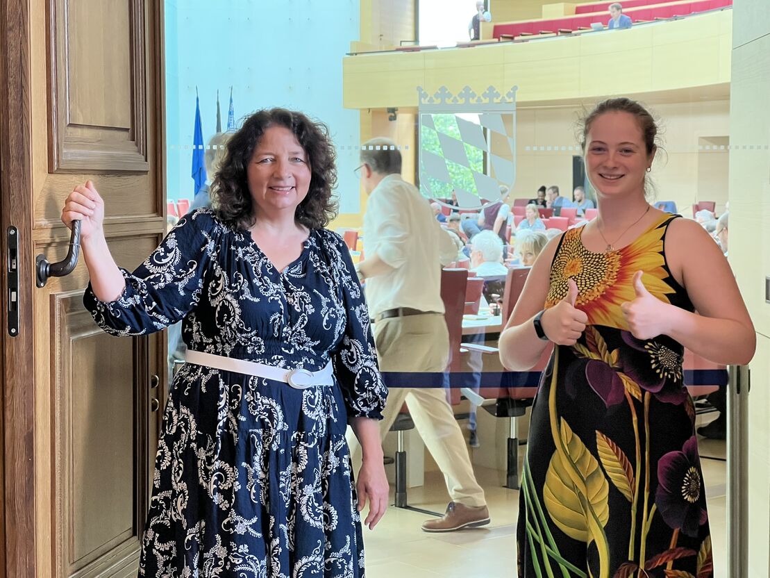 Während des Praktikums konnte die 17-Jährige aus der Gemeinde Hohenthann zudem ihr politisches Wissen erweitern. Der vielfältige Austausch mit verschiedenen Akteur*innen bei Terminen, bei denen sie Ruth Müller begleitete, bot ihr die Chance, wertvolle Kontakte zu knüpfen. Zu den Höhepunkten zählten die Tage in München, in denen sie den Landtagsbetrieb hautnah kennenlernte und Ausschuss- sowie Plenarsitzungen mitverfolgte. So war Miriam Hatzl beispielsweise dabei, als in der BayernSPD Landtagsfraktion über das neue Ladenschlussgesetz diskutiert wurde und konnte im Anschluss sowohl die Debatte im Plenarsaal als auch die Abstimmung dazu verfolgen. „Hier werden Argumente abgewogen, es wird um Positionen gestritten und man hat dabei gesehen, dass der Vorteil für die einen, länger einkaufen zu gehen, zu Belastungen bei anderen Menschen führt“, stellt Miriam Hatzl fest.