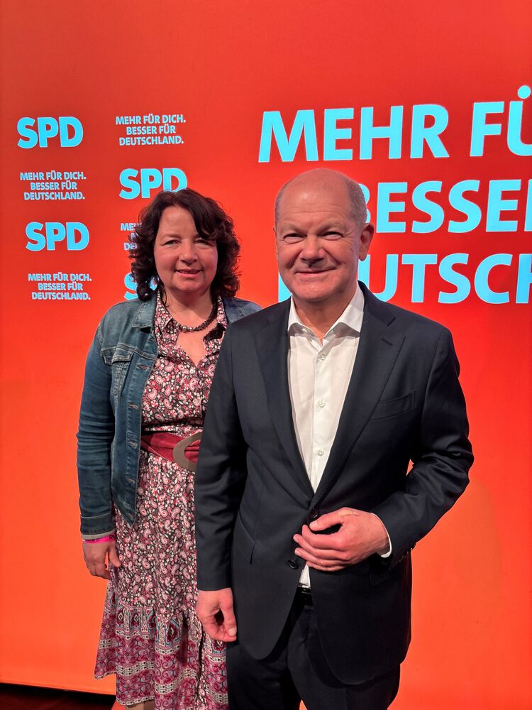 Generalsekretärin der BayernSPD Ruth Müller unterwegs mit Olaf Scholz