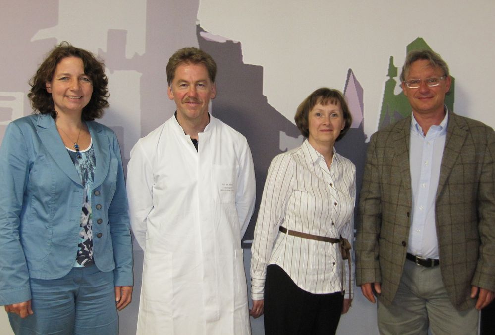 Foto: MdL Ruth Müller (li) unterstützte die Aktion „Diabetes bewegt uns" vor Ort, v.l. der Chefarzt der Medizinischen Klinik am Krankenhaus Vilsbiburg, PD Dr. Christian Pehl, und die Referenten Diabetes-Assistentin Gabriela Gladysch und Diabetologe Dr. Rüdiger Meesters.