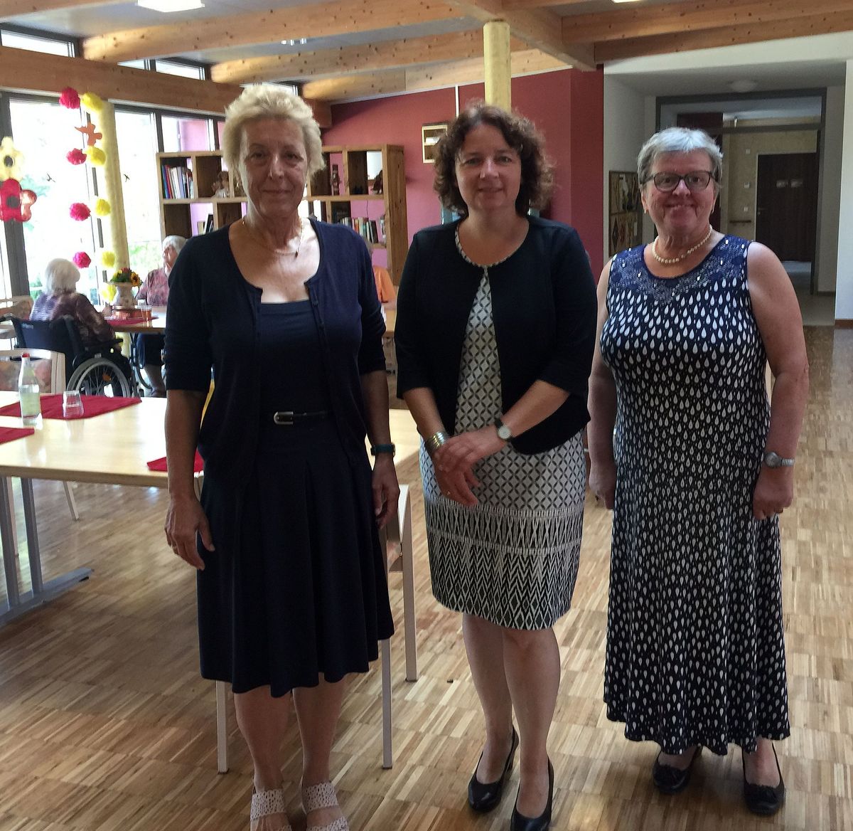 Zum anderen sei der Hospiz- und Palliativgedanke seit kurzer Zeit auch verstärkt in den Pflegeheimen angekommen. „Dies ist auch Ausfluss der Debatte im Deutschen Bundestag zur Neuregelung der Sterbehilfe“, so Ruth Müller, MdL. Dabei sei eben auch beschlossen worden, die Palliativ- und Hospizversorgung im ambulanten und stationären Bereich zu stärken. „In unserem Haus wird ein Palliativ- und Hospizkonzept umgesetzt“, so Luckwaldt. In diesem Zusammenhang zollte Bürgermeisterin Katharina Rottenwallner den Ehrenamtlichen des Vilsbiburger Hospizvereins größten Respekt für ihre wertvolle Arbeit und Begleitung im Altfraunhofener Seniorenzentrum. Hervorragend laufe auch die Zusammenarbeit mit der SAPV (spezialisierte ambulante Palliativ-Versorgung) des Klinikums Landshut, die den Pflegekräften wertvolle Tipps geben und sehr viel Fachkompetenz in das Haus bringen. Die Gewinnung von Pflegekräften sei immer wieder eine große Herausforderung, so Gisela Luckwaldt. Dabei arbeite das bewährte Frauenteam aus Heimleitung und Bürgermeisterin auch immer wieder gut zusammen, wenn es darum geht, Wohnungen für Angestellte zu finden. „Derzeit überlegen wir, in den Mietwohnungsbau einzusteigen“, so Bürgermeisterin Rottenwallner. Schließlich stehe bereits in der Bayerischen Verfassung, dass Staat und Gemeinden den Bau von günstigem Wohnraum fördern sollen. Sie habe selbst einen Pflegeberuf erlernt, so Gisela Luckwaldt und in ihrem Berufsleben immer wieder die Erfahrung gemacht, dass „Pflege ein schöner Beruf sei, der einen zwar oft fordere, aber auch immer wieder mit vielen positiven Erlebnissen belohne“.