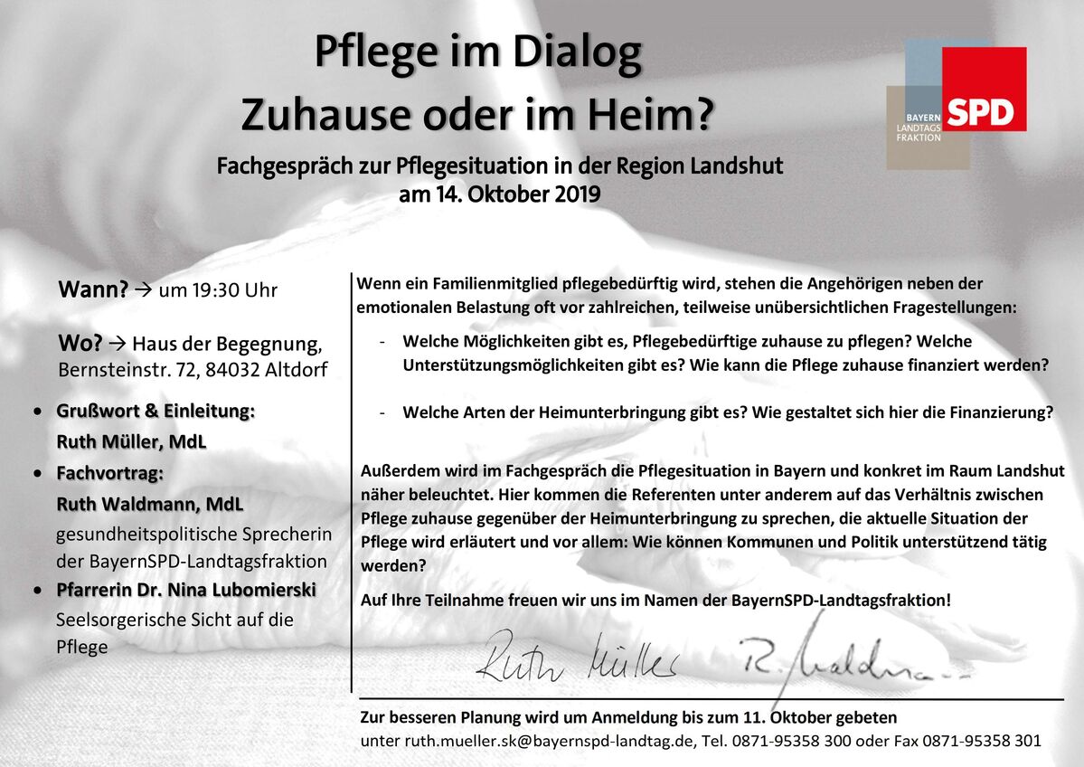 Fachgespräch zur Pflegesituation in der Region Landshut am 14. Oktober in Atldorf mit Ruth Müller, MdL – alle Interessierten sind herzlich eingeladen