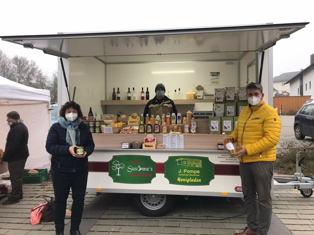 Seit über drei Jahren gibt es jeden Mittwoch am Vormittag den Wochenmarkt, der sich zu einem Treffpunkt für alle entwickelt hat, die regionale Erzeugnisse schätzen. Erstmals veranstaltete die Gemeinde Neufahrn den Wochenmarkt am Samstag, um auch den Berufstätigen und Familien das Einkaufserlebnis zu vermitteln. Die SPD-Landtagsabgeordnete Ruth Müller, die für den Bereich der Direktvermarktung im Landwirtschaftsausschuss zuständig ist, besuchte den Markt zusammen mit Bürgermeister Peter Forstner, um sich mit den Marktbeschickern zu unterhalten. „Wochenmärkte sind Begegnungsmöglichkeiten im Ort, die zudem das Vertrauen und Verständnis der Menschen für die Lebensmittel stärken“, so Müller. Neben der Wertschöpfung, die der Region zugute komme, hätten die Wochenmärkte auch den Vorteil der kurzen Transportwege. „Die Corona-Pandemie hat das positive Image der Direktvermarkter verstärkt“, stellte auch der Sprecher der Marktleute, Jürgen Pompe fest, der mit seinen Äpfeln und den Honigprodukten eine feste Größe auf dem Wochenmarkt ist. Er bedankte sich auch bei Bürgermeister Peter Forstner für die Unterstützung durch die Gemeinde, denn ohne diese könnte die Logistik nicht jede Woche bewältigt werden. Auf dem Neufahrner Wochenmarkt, der immer mittwochs ab 8.00 Uhr am Kindergartenparkplatz stattfindet, gibt es Obst und Gemüse aus der Region, Fleisch, Käse und Wurstwaren vom Bio-Bauernhof, Honig, Säfte, Liköre und Marmeladen, aber auch Backwaren. Besondere Besucher wie Töpfer oder Messerschleifer runden das Angebot in Neufahrn ab. Und nach den positiven Rückmeldungen am Samstag wird sicher bald wieder einmal ein Samstags-Markt stattfinden, sobald es die Corona-Lage zulässt, machte Bürgermeister Peter Forstner deutlich.