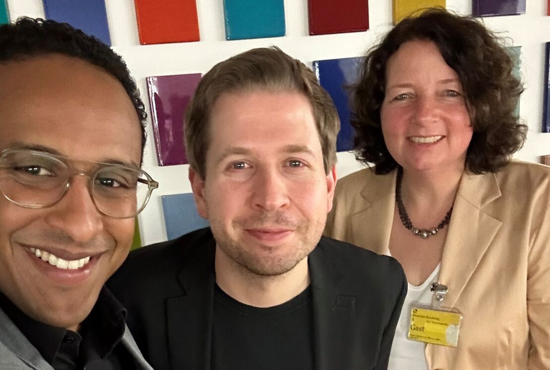 Die beiden Generalsekretäre der BayernSPD, Ruth Müller, MdL und Dr. Nasser Ahmed, wünschen dem Generalsekretär der SPD, Kevin Kühnert, alles Gute und bedanken sich für die gute Zusammenarbeit