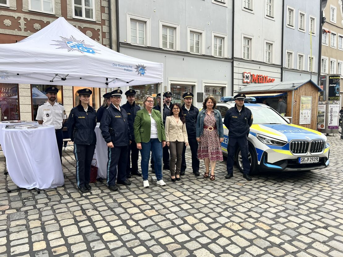 Christiane Feichtmeier, Anja König und Ruth Müller am Infostand der Polizei in der Landshuter Altstadt