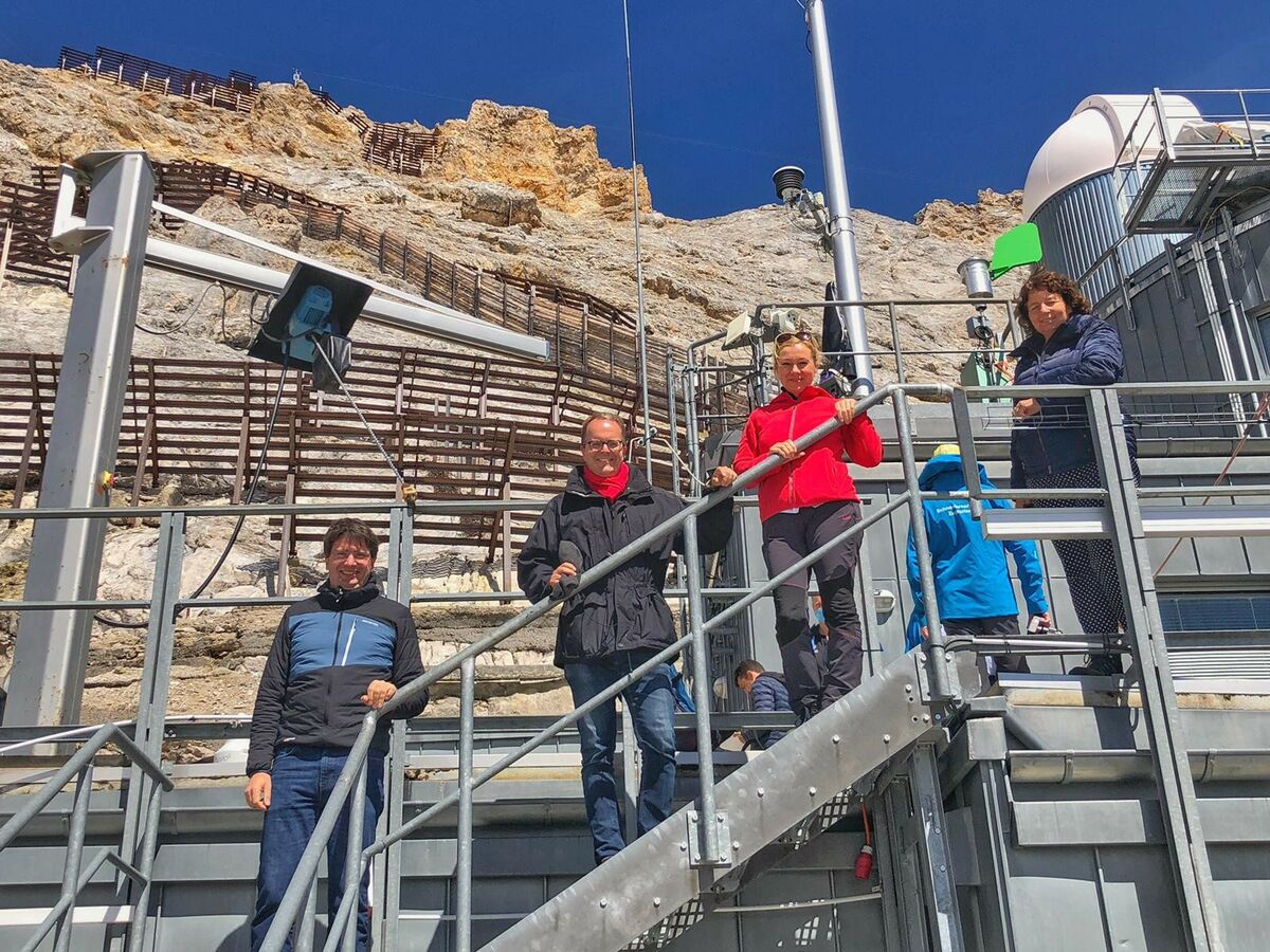 Tolle Aussichten für die SPD-Abgeordneten Florian von Brunn, Markus Rinderspacher, Doris Rauscher und Ruth Müller - aber leider nicht für den Schneeferner Gletscher auf der Zugspitze, der aufgrund des Klimawandels immer weiter schmilzt.