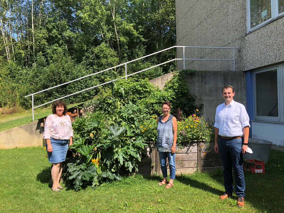 „Seit 26 Jahren bin ich hier an der Schule tätig und hätte mir nie träumen lassen, dass sich Kinder so auf den Unterricht freuen, wie es nach Corona der Fall war“, berichtete Konrektorin Michaela Schneider ihren Besuchern aus der Politik. Gekommen war 2. Bürgermeister Martin Kreutz zusammen mit der stellvertretenden Fraktionsvorsitzenden der SPD im Bayerischen Landtag, Ruth Müller, MdL aus dem benachbarten Landkreis Landshut. Im Rahmen ihrer Sommertour will die Abgeordnete mit den Menschen aus der Region ins Gespräch kommen, um über aktuelle Themen zu reden. Und diese gab es bei dem knapp einstündigen Gespräch genug: Nicht nur Corona beschäftigt die Schule und die Marktgemeinde, sondern auch die ganz alltäglichen Baumaßnahmen, die in einem 50 Jahre alten Schulgebäude anfallen, erläuterte Martin Kreutz. Bei einem Rundgang konnten sich die Politiker von der gelungenen Sanierung der Turnhalle überzeugen und auch die Schulmensa der offenen Ganztagsschule lädt zum Verweilen ein. „Wenn das Recht auf Ganztagsbetreuung umgesetzt wird, müssen wir wohl eine Erweiterung planen“, stellte Martin Kreutz fest. Für die 220 Grundschüler und 100 Mittelschüler gibt es in dem alten Schulhaus viel Platz und große Räume. „Dadurch konnten wir auch gut Unterricht mit Abstand halten, denn die Klassenzimmer sind noch nach einem Raumkonzept gebaut, als die Schülerzahlen in den Grundschulklassen noch höher sein durften“, erläuterte Konrektorin Schneider. Wie es mit der Ausstattung von Lüftungsanlagen weitergehe, sei derzeit noch ungeklärt, werde aber in einer der nächsten Gemeinderatssitzungen entschieden, berichtete Martin Kreutz. Was es schon gibt, sind CO²-Sensoren, um zumindest für rechtzeitiges Lüften zu sorgen. „Allerdings erwarten die Eltern für den Herbst, dass der Schulbetrieb krisenfest sei“, so Müller. Die Kinder, ihre Eltern und auch Großeltern haben unter schwierigen Umständen ihr Bestes getan, aber die Rückkehr in den Schulalltag war für die Kinder dennoch eine Herausforderung, berichtete die langjährige Pädagogin aus ihren Erfahrungen, die Mädchen und Buben müssen sich erst wieder daran gewöhnen. Auch wenn man digital vieles organisieren konnte, habe doch die direkte Rückmeldung gefehlt, die man in einem Klassenzimmer mit allen Sinnen ganz anders aufnehmen könne. Froh sei man um die Stelle der Jugendsozialarbeit, die für Eltern, Schüler und die Lehrkräfte eine wichtige Schnittstelle und Bereicherung sei. Für das neue Schuljahr sei es umso wichtiger, dass auf die speziellen Bedürfnisse der jungen Menschen Rücksicht genommen werde und ihre soziale und emotionale Entwicklung in den Blick rücken, betonte Müller. Denn der Wert des Lernens bestehe aus vielen Mosaiksteinen und nicht nur aus der Vermittlung von Lesen- und Schreiben lernen.