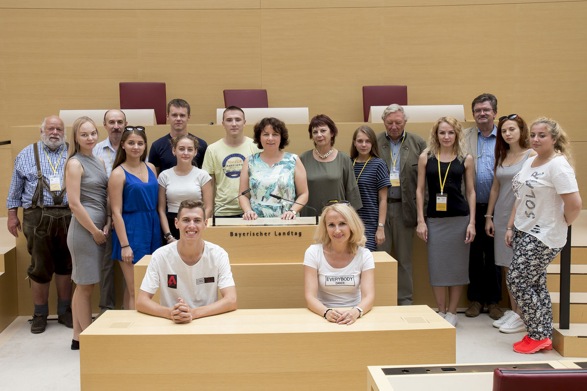 Im Programm, dass der Freundeskreis mit der Vorsitzenden Gabriele Becker erstellt hat, war auch ein Tag in der bayerischen Landeshauptstadt vorgesehen und die Landtagsabgeordnete Ruth Müller, die zugleich seit vielen Jahren im Freundeskreis in der Vorstandschaft aktiv ist, lud die Gäste aus dem 6.500 Kilometer entfernten Nowosibirsk zu einer Führung in den Bayerischen Landtag ein. Wenngleich es aufgrund der Sommerferien im Maximilianeum eher beschaulich zuging, so konnten die Gäste dennoch erahnen, welche Betriebsamkeit an normalen Parlamentstagen auf den weitläufigen Gängen und in den großen Sälen herrscht. Müller erläuterte die Geschichte des Maximilianeums und gab einen Einblick in ihre politische Tätigkeit. Sie informierte über ihre Arbeit in den beiden Ausschüssen „Gesundheit und Pflege“ und „Landwirtschaft, Ernährung und Forsten“ und bei einer Diskussionsrunde konnten die Besucher live den Plenarsaal erleben. Nach dem Mittagessen in der Landtagsgaststätte hatten die jungen Gäste noch Zeit für einen Bummel durch die Fußgängerzone in München.