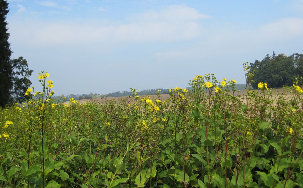 Vereinzelt sieht man in der niederbayerischen Landschaft gelbe Farbkleckse – die „Durchwachsene Silphie“, die als Energie- und Bienenpflanze in Zukunft hoffentlich eine größere Rolle beim Anbau spielen soll.
