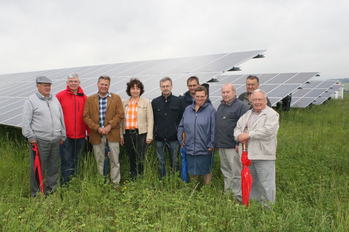 Imker und Vogelschützer nahmen das Angebot der Energie-Genossenschaft gerne auf, die Wiesenflächen um die Solarpaneele bienen- und vogelfreundlich zu gestalten. Dies sei jedoch nicht einfach, so Martin Hujber, der berichtete, dass nach den ersten beiden Standjahren die Blütenvielfalt der Wiese drastisch abgenommen habe. Es waren anfangs eingesäte ein-bis dreijährige Blütenpflanzen, die das Bild bestimmten. Diese wurden inzwischen aber aufgrund des nährstoffreichen Bodens und des zur Pflege üblichen Mulchens von starkwachsenden Wiesengräsern verdrängt. „Heute ist für Bienen und andere Insekten hier nicht mehr viel zu holen“, so Imker-Ortsvorsitzender Johann Girnghuber. „Auch die Vögel und das Niederwild finden in den fetten Wiesen keine ausreichende Nahrung und nur einen bedingt nutzbaren Lebensraum“ ergänzte Anton Moissl, LBV-Mitglied und Energie-Genosse.