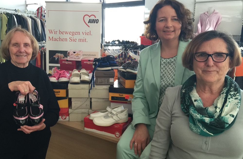 Passend zu den sommerlichen Temperaturen überbrachte die Pfeffenhausener Landtagsabgeordnete Ruth Müller der AWO-Kleiderkammer in Landshut 30 Paar Kinderschuhe.