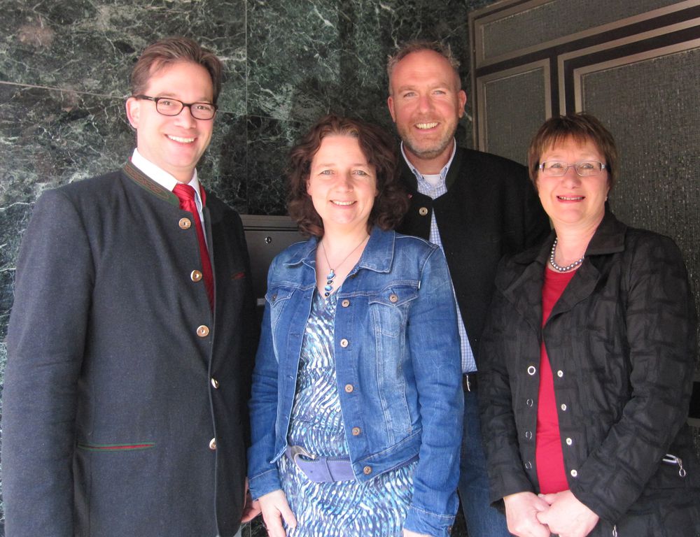 Bildunterschrift: Staatssekretär Florian Pronold, MdB, Landtagsabgeordnete Ruth Müller, Stadtrat Peter Stranninger, SPD-Bezirksgeschäftsführerin Christine Schrock.