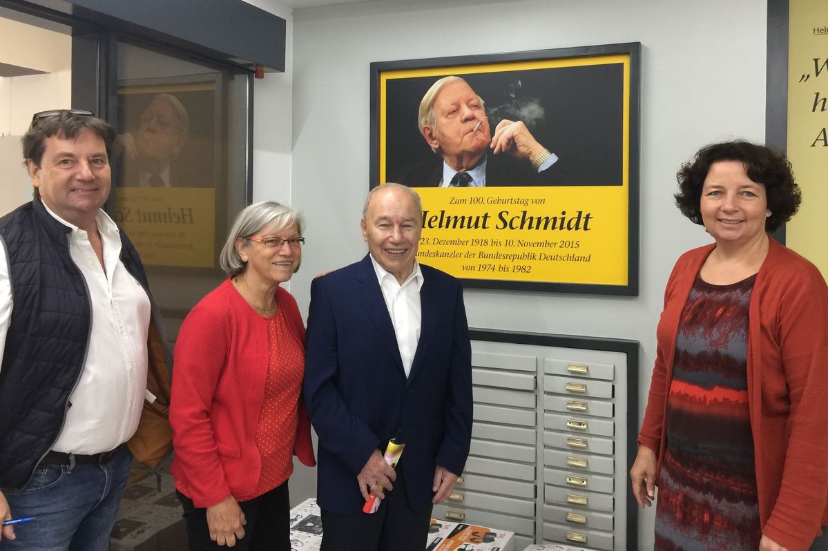 An einer Wand konnten die sozialdemokratischen Gäste am Ende nicht vorbeilaufen. Ein großformatiges Plakat zeigt dort Altkanzler Helmut Schmidt, der in diesem Jahr 100 Jahre alt geworden wäre, mit der für ihn typischen Zigarette im Mundwinkel. Daneben stehen einige der bekanntesten Zitate des SPDPolitikers,