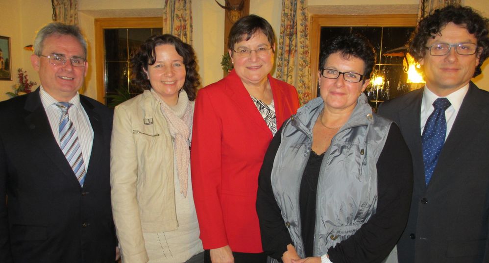 Bild: SPD-Ortsvorsitzender Hans Seidl mit Marktgemeinderätin Sabine Wim-mer, stellvertretender Landrätin Christel Engelhard, der Landtagsabgeordneten Ruth Müller und 3.Bürgermeister Georg Wild