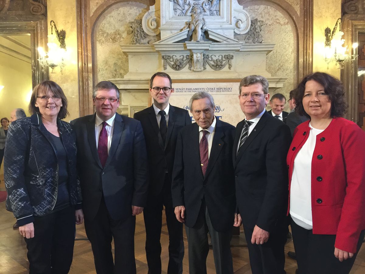 Heute Vormittag trafen die Abgeordneten auch Felix Kolmer, einen Überlebenden der Konzentrationslager Theresienstadt, Auschwitz und Friedland anberaumt. Felix Kolmer, Jahrgang 1922, der nach dem 2. Weltkrieg Physik studierte, wurde Professor für Akustik mit weltweiter Forschungstätigkeit. Er ist ein einflussreicher Zeitzeuge, Präsident der Theresienstädter Initiative, Vorstandsmitglied der jüdischen Gemeinde Prag und Vizepräsident des internationalen Auschwitz Komitees.