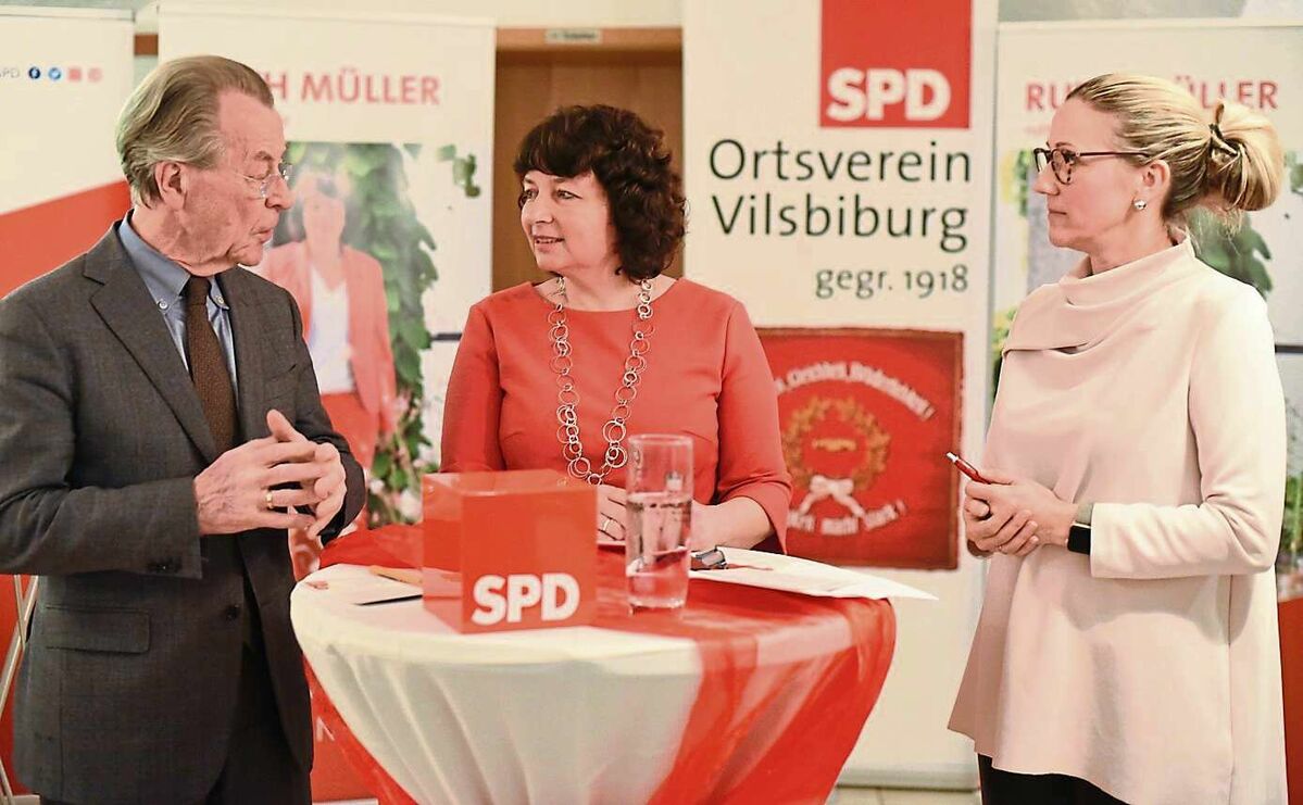 Vilsbiburg. Zum Finale nochmals einen Energieschub von einem prominenten Sozialdemokraten holte sich am Mittwoch die Stadt-SPD: Franz Müntefering war in Frauensattling zu Gast beim Abschluss des Bürgermeister- und Stadtratswahlkampfs. In einer lockeren Diskussionsrunde mit dem ehemaligen SPD-Chef, Vizekanzler, und Minister konnte SPD-Bürgermeisterkandidatin Sibylle Entwistle gemeinsam mit Landratskandidatin Ruth Müller nochmals ihre Ziele vorstellen und auf den Wahlkampf zurückblicken.