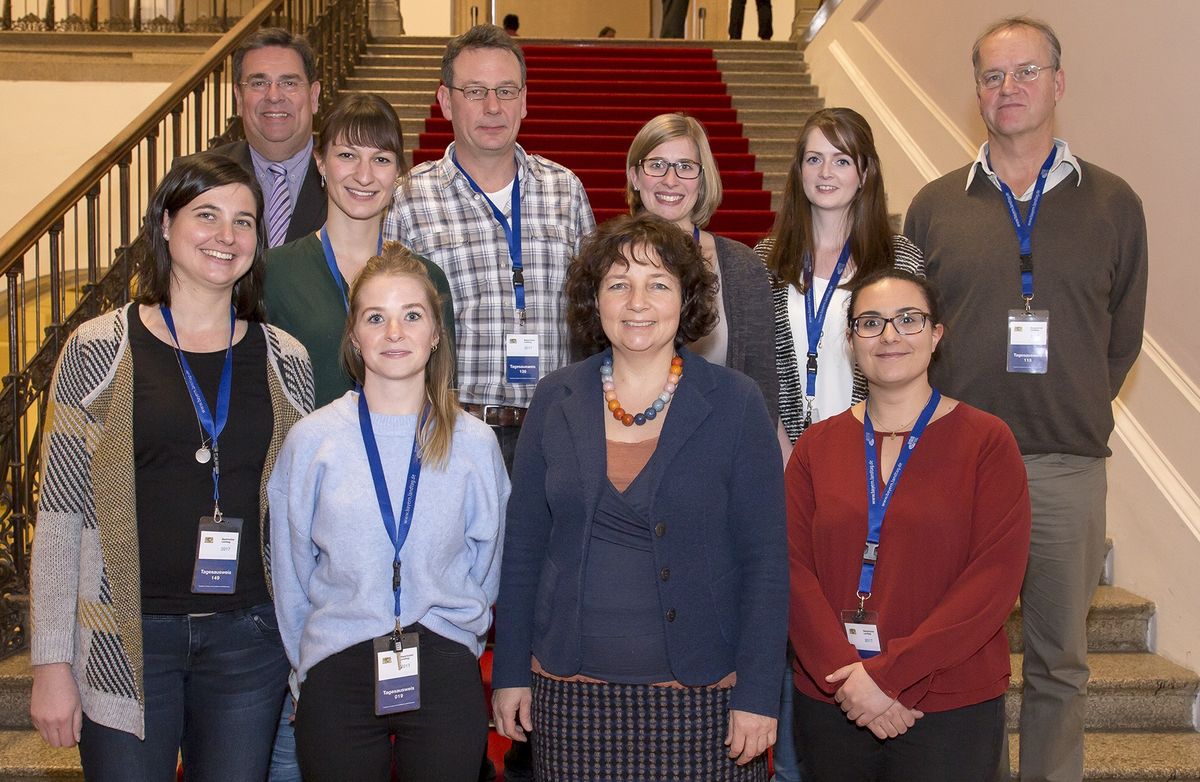 Bildunterschrift: Die Abgeordneten Ruth Müller (vorne, 2.v.re.) und Herbert Woerlein (hinten li.) mit den Seminaristinnen der Realschule Neufahrn in Begleitung von Dr. Helmut Prusko (hinten re.) und Stefan Schäfer (hinten 3.v.li.)