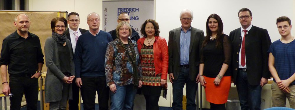 Foto: Die beiden Mitglieder der Enquete-Kommission Roland Spiller (2. V. r.) und Ruth Müller (5. V. r.) mit den Diskussionsteilnehmern der Friedrich-Ebert-Stiftung
