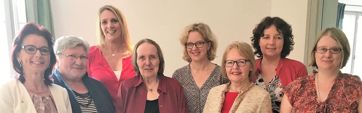Foto v. l. n. r.: Anja König, Maria Manske, Patricia Steinberger, Ute Kubatschka, Natascha Kohnen, MdL; Maria Haucke, Ruth Müller, MdL und Bettina Blöhm, stellvertretende Vorsitzende der AsF Niederbayern