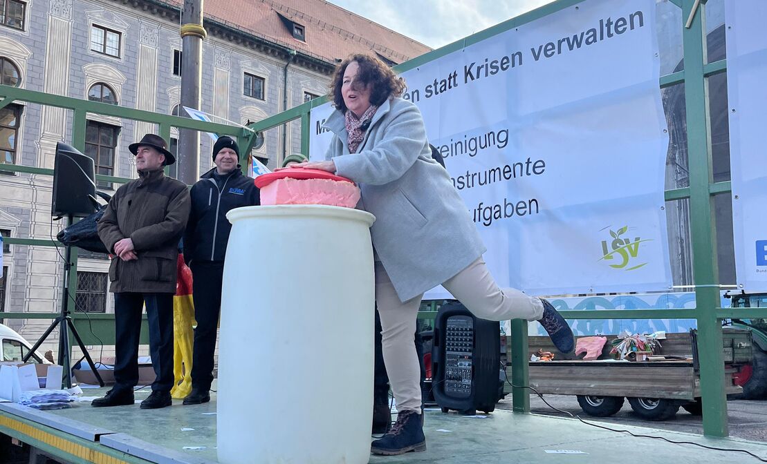 Ruth Müller, agrarpolitische Sprecherin der SPD-Landtagsfraktion, demonstriert mit Milchbäuerinnen und Milchbauern in München