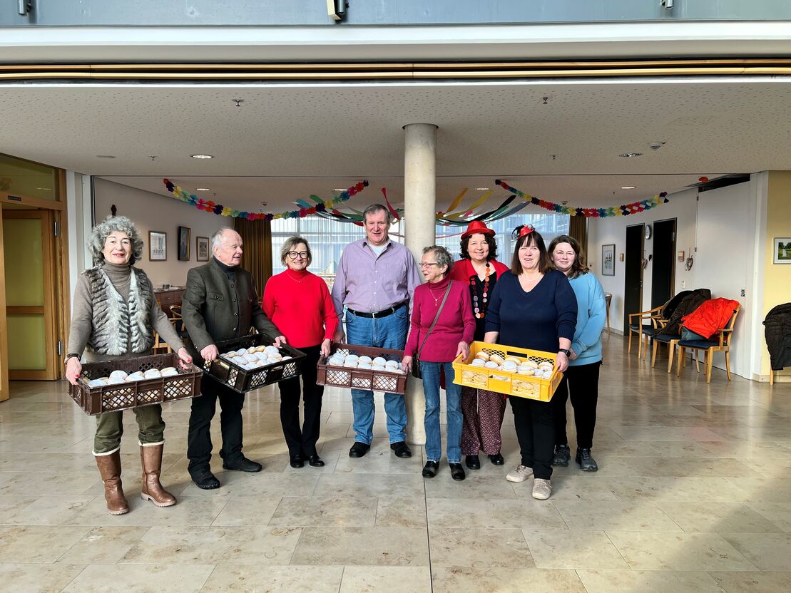 Rottenburg. Eine besondere Überraschung hatte die SPD Rottenburg am Rosenmontag für die Beschäftigten und Bewohner der Spitalstiftung Pattendorf parat: SPD-Vorsitzende Rosmarie Schmid besuchte zusammen mit Gemeinderatskandidat:innen Anita Gegenfurtner, Bernhard Bannes, Gisela Hierl und Kerstin Seinige, sowie Landratskandidatin Ruth Müller wieder einmal das Seniorenheim und hatte passend zum Faschingsendspurt Krapfen dabei. Heimleiter Thomas Rohrmeier und Pflegedienstleitung Ruth Schweiger freuten sich über den Besuch und die damit verbundene Wertschätzung ihrer Arbeit. Seit Corona besuchen die SPD-Mitglieder immer wieder das Seniorenheim, um auch den Mitarbeitenden in der Pflege zu danken. „Denn Klatschen alleine reicht nicht“, formulierte es Ruth Müller beim Termin vor Ort.
