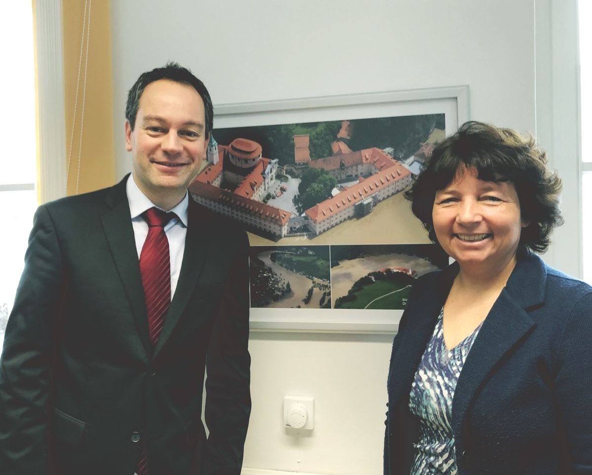 Zahlreiche Themen rund um das lebensnotwendige „Wasser“ besprachen die SPD-Landtagsabgeordnete Ruth Müller und der neue Leiter des Wasserwirtschaftsamts Landshut, Constantin Sadgorski. Als Mitglied im Ausschuss für Umwelt und Verbraucherschutz nutzte die Abgeordnete die Gelegenheit, einen ersten Kontakt herzustellen. „Wir sind für alle Bereiche des Wassers zuständig“, erklärte der neue Behördenleiter. Ein besonderes Augenmerk will Sadgorski auch auf die Beratung der Gemeinden hinsichtlich Hochwasserschutz und Gewässerrenaturierung legen. „Trinkwasserschutz, Hochwasserschutz aber auch die Pflege und Entwicklung von Gewässern sind unsere Aufgaben“. Dafür brauche man aber auch qualifiziertes Personal, denn auch bei den Wasserwirtschaftsämtern mache sich der Fachkräftemangel bemerkbar. Vor diesem Hintergrund will sich die Abgeordnete auch dafür einsetzen, dass im neuen Haushaltsentwurf die 150 zusätzlichen Stellen, die 2013 nach dem Hochwasser geschaffen wurden, erhalten bleiben.