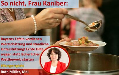 Die agrarpolitische Sprecherin der BayernSPD-Landtagsfraktion Ruth Müller kritisiert den vom Landwirtschaftsministerium ins Leben gerufene Wettbewerb zwischen bayerischen Tafeln scharf. "Es ist beinahe schon zynisch, dass CSU und Freie Wähler erst unsere Forderungen ablehnen, die Tafeln finanziell besser zu unterstützen - und dann die ehrenamtlichen Helferinnen und Helfer noch mit einem Wettbewerb zu verhöhnen", fasst Müller zusammen. "Hinzu kommt, dass etwa Tafeln auf dem Land schwerer an Lebensmittel kommen als Tafeln in den Großstädten. Hier wird noch zusätzlich Druck ausgeübt - als würden die Mitarbeiterinnen und Mitarbeiter nicht sowieso ihr Bestes geben."