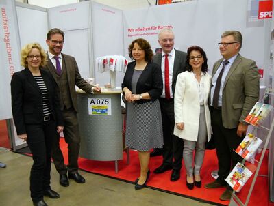 Auch in diesem Jahr ist die SPD-Landtagsfraktion mit einem Messestand auf der Landshuter Umweltmesse, welche unter der Schirmherrschaft der Bundes-Umweltministerin Barbara Hendricks (SPD) steht, vertreten. Beim Bundesparteitag in Berlin nutzte die Landshuter Abgeordnete Ruth Müller noch einmal die Gelegenheit, mit der Schirmherrin ins Gespräch zu kommen: „Mit ihrem vielfältigen Programm leistet die Landshuter Umweltmesse traditionell einen wichtigen Beitrag zur Umweltbildung“, so Hendricks, die es sehr bedauert, nicht persönlich erscheinen zu können, sich jedoch freut, ihren parlamentarischen Staatssekretär und Landesvorsitzenden der BayernSPD, Florian Pronold, als Vertreter auf der Umweltmesse vor Ort zu wissen. Dass die SPD-Landtagsabgeordneten auf der Messe mit einem eigenen Stand der Fraktion vertreten sind, begrüßt die Ministerin, denn so könne man die Gelegenheit nutzen, mit den Besucherinnen und Besuchern über politische Themen ins Gespräch zu kommen.