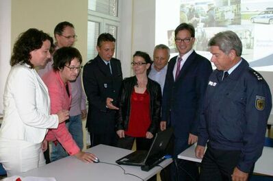 Auf dem Foto von rechts: Roman Nagler, Florian Pronold, Klaus Pauli, Anja König, Karl-Heiz Blümel, Herbert Lohmeyer, Brigitte Zypries und Ruth Müller Gemeinsam mit der ehemaligen Justizministerin Brigitte Zypries und dem stellvertretenden Fraktionsvorsitzenden der SPD-Bundestagsfraktion Florian Pronold folgten Mitglieder der Landshuter SPD einer Einladung der Bundespolizei und informierten sich über die Arbeit und Aufgaben dieser Behörde.