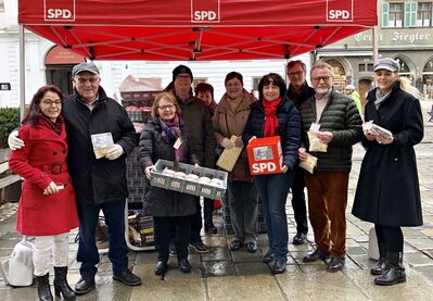 SPD-Stadt- und Kreisräte verteilen Faschingskrapfen zugunsten der Landshuter Frauenhäuser