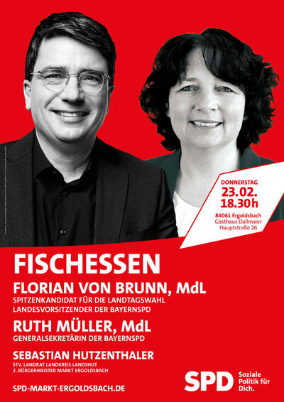 Nach zwei Jahren coronabedingter Pause kann die SPD Ergoldsbach mit einem Redner-Duo beim politischen Fischessen am 23. Februar aufwarten, das zwei Spitzenpolitiker beinhaltet.
