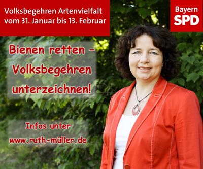 „Der große Zulauf zum Volksbegehren „Artenvielfalt“ macht deutlich, dass sich trotz Eis und Schnee viele Menschen Sorgen um unsere Natur, das Insektensterben und die damit verbundenen Auswirkungen machen“, stellt die Pfeffenhausener Landtagsabgeordnete Ruth Müller fest. Dass der Ministerpräsident nun auf die Schnelle einen „runden Tisch“ ankündigt, zeigt, dass dieses Thema wohl von den verantwortlichen Ministern und Ministerinnen falsch eingeschätzt wurde. Der Unmut über die aktuelle Förderpolitik wurde beim 11. Bayerischen Imkergespräch in Starnberg von den über 350 Imkerinnen und Imkern bei der Podiumsdiskussion mit der Landwirtschaftsministerin und Vertretern des Bauernverbands deutlich zum Ausdruck gebracht.
