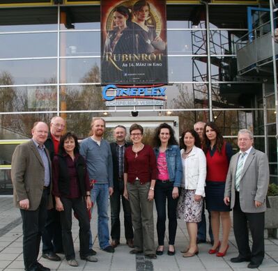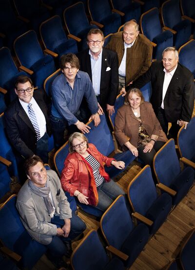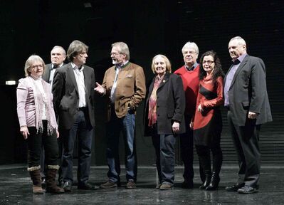 Im Bild: Intendant Tilch, Maria Haucke, Ute Kubatschka, Klaus Pauli, Gerd Steinberger, Geschäftsführer Senf, Robert Gewies und Dietmar Franzke.