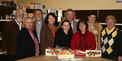 Foto v. l. n. r.: Horst und Ute Kubatschka, Robert Gewies, Ruth Müller, Anja König, Holger Peters (Diakonie), MdL Johanna Werner-Muggendorfer, Christel Engelhard, Brigitte Hochban (Leiterin "Tafel")