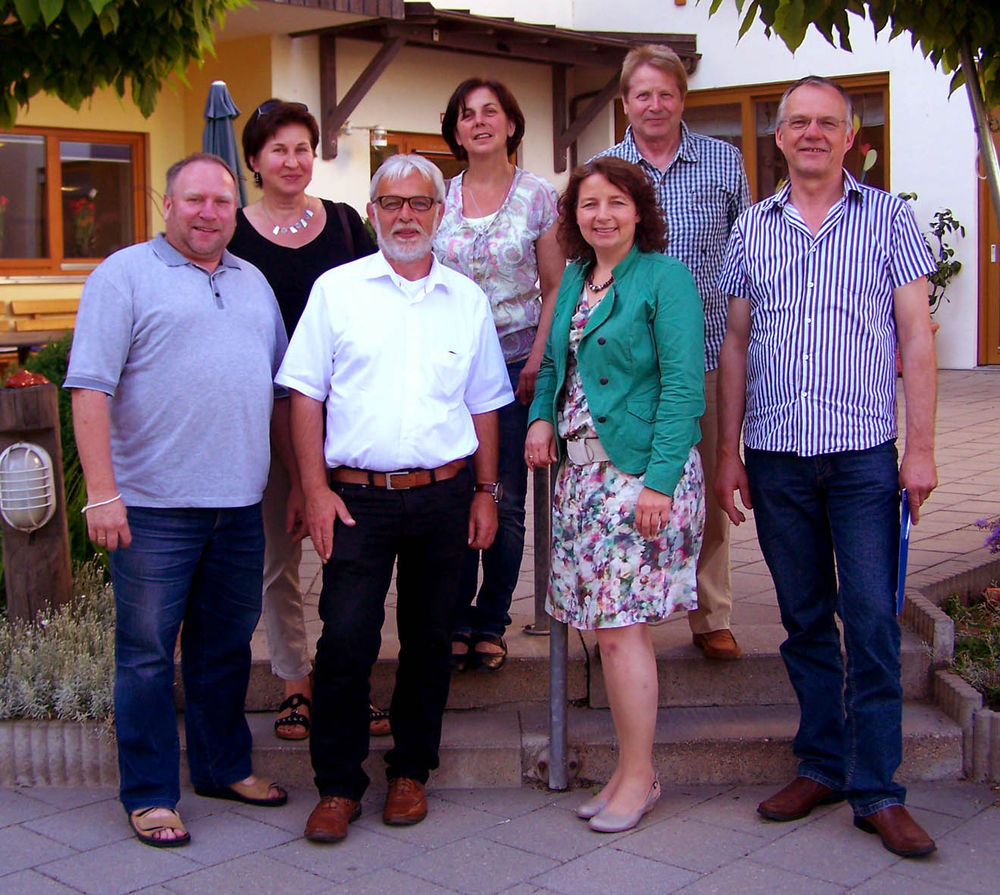 Bildunterschrift: Ruth Müller, MdL und Ralf Neiser (vorne Mitte) mit den Kreisräten (v.re.) Fritz Fuchs, Heinz Uekermann, Rosi Deser und Anita Karl sowie der Vertreter des OV Geiselhöring, Rainer Pasta