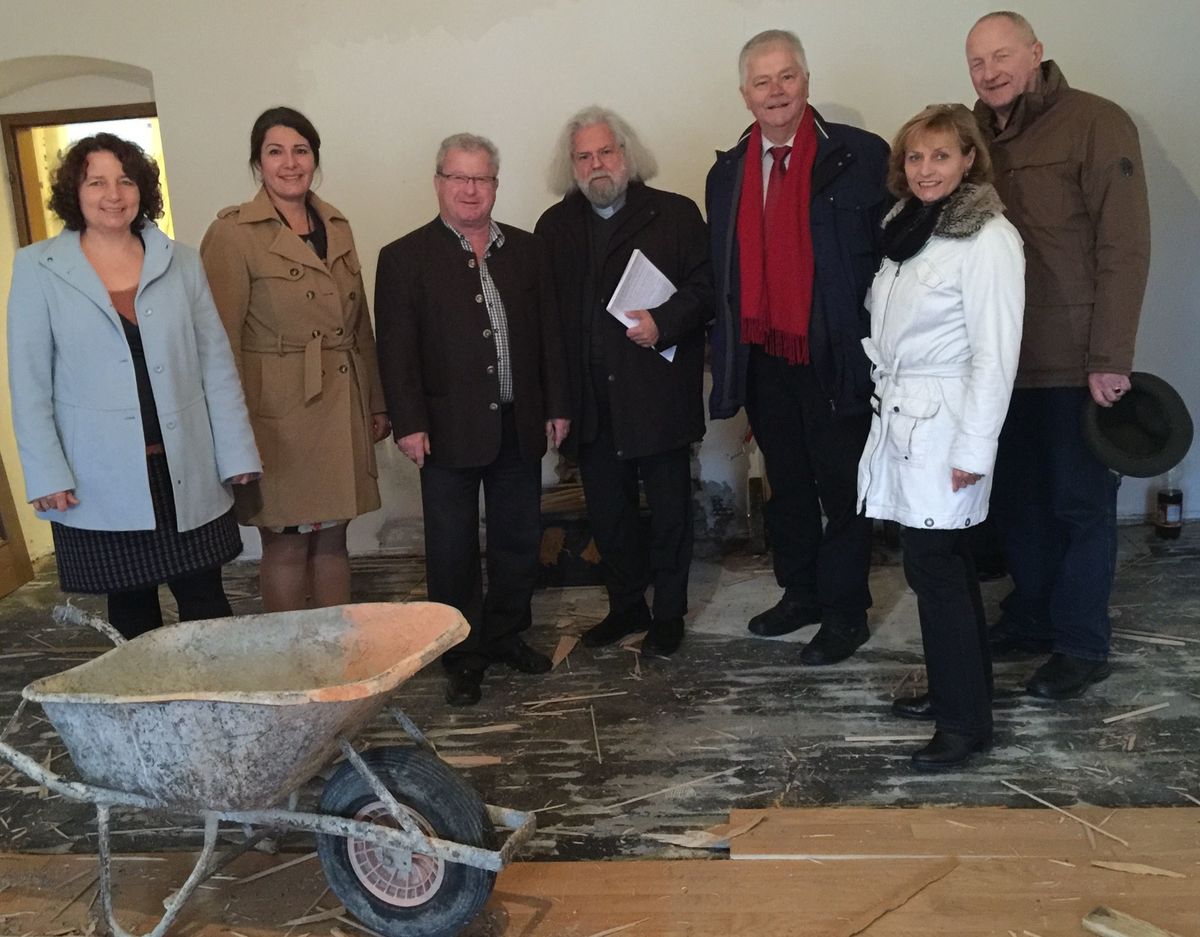 Deutlich wurde im Zuge der Besichtigung auch, dass in den aktuell geplanten Umbaukosten von rund 400 000 Euro, an denen sich die zuständige Diözese Regensburg mit knapp der Hälfte der Summe beteiligt, einige weitergehende Maßnahmen gar nicht eingerechnet sind, wie beispielsweise eine energetische Sanierung des komplett ungedämmten Speichers. Für die bereits begonnenen Umbauarbeiten und für weitere Projekte, um den von den Neumarkter Benediktinern vor rund 300 Jahren gebauten Pfarrhof fit für die Zukunft zu machen, ist Pfarrer Peter König intensiv auf der Suche nach Spendern aus Bürgerschaft und Geschäftswelt, wie er deutlich machte. Schließlich sollen für die Sanierung nicht alle Finanzmittel der Pfarrei komplett aufgebraucht werden. Mit einer Fertigstellung der aktuell laufenden Umbauten sei übrigens Ostern 2017 zu rechnen, wie König den Besuchern zu berichten wusste. Erst dann kann er vom Klösterl in den ersten Stock des Pfarrhofs einziehen, im Erdgeschoss werden Büroräume der Pfarrei eingerichtet.