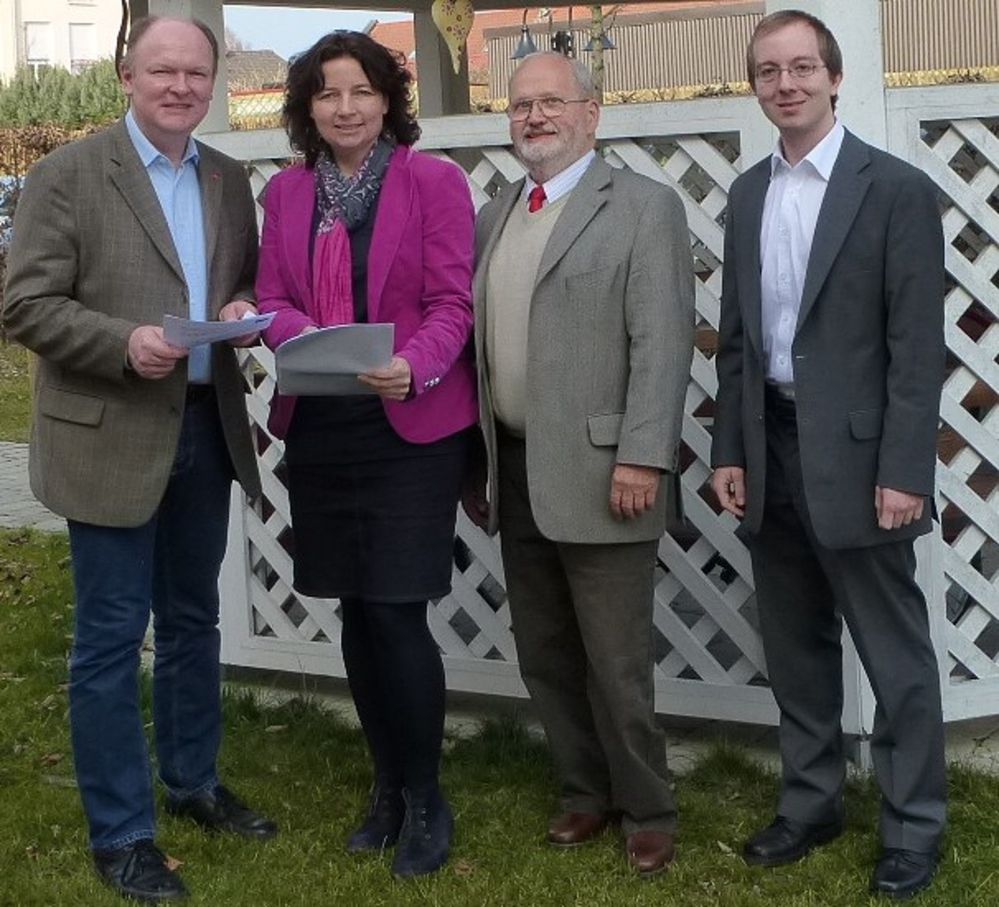 Bildunterschrift: Zogen Bilanz beim Konjunkturprogramm von 2009 für die Kommunen: (v.li.) Dr. Bernd Vilsmeier, Ruth Müller MdL, Hartmut Manske und David Dick.