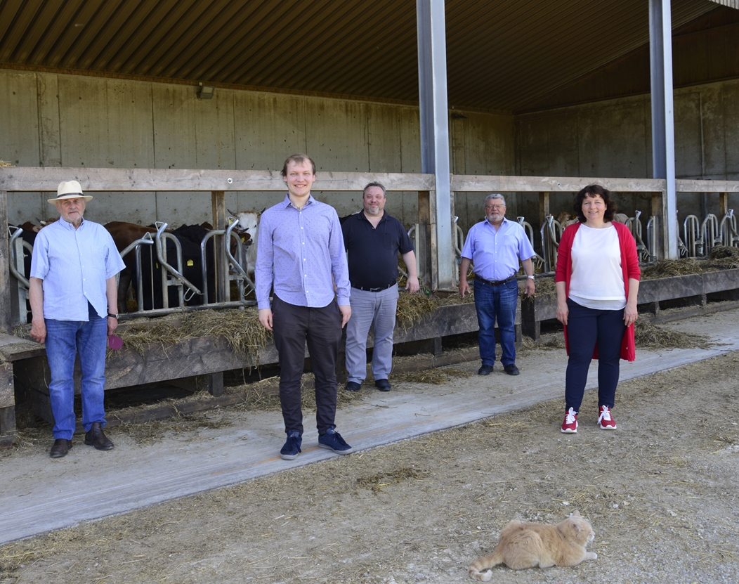 Seit 1616 gibt es den Prößlbauer-Hof in Kleingundertshausen. Dass dort seit fast zehn Jahren Biolandwirtschaft betrieben wird, ist Edgar Götz-Bachmeier zu verdanken, denn er hat den Hof von seiner Tante übernommen, baut ihn um und aus und bewirtschaftet die rund 110 Hektar Acker- und Grünland. Im Stall und auf den Weiden werden 190 Angus-Rinder gehalten, daneben je nach Jahreszeit auch Hühner, Enten, Puten und Gänse sowie 20 Freiland-Schweine, die auf Vorbestellung ausgeliefert werden. Im Rahmen der Mai-Aktionswoche „Frühstück auf dem Bauernhof“ hatte Edgar Götz-Bachmeier die agrarpolitische Sprecherin der BayernSPD-Landtagsfraktion Ruth Müller, MdL sowie den Bundestagskandidaten Vincent Hogenkamp zusammen mit den Mainburger SPD-Stadträten Edgar Fellner und Hans Niedermeier eingeladen, um über die Situation der Landwirtschaft zu sprechen. Zwar nicht beim Frühstück, sondern bei einem Rundgang über das Hofgelände.