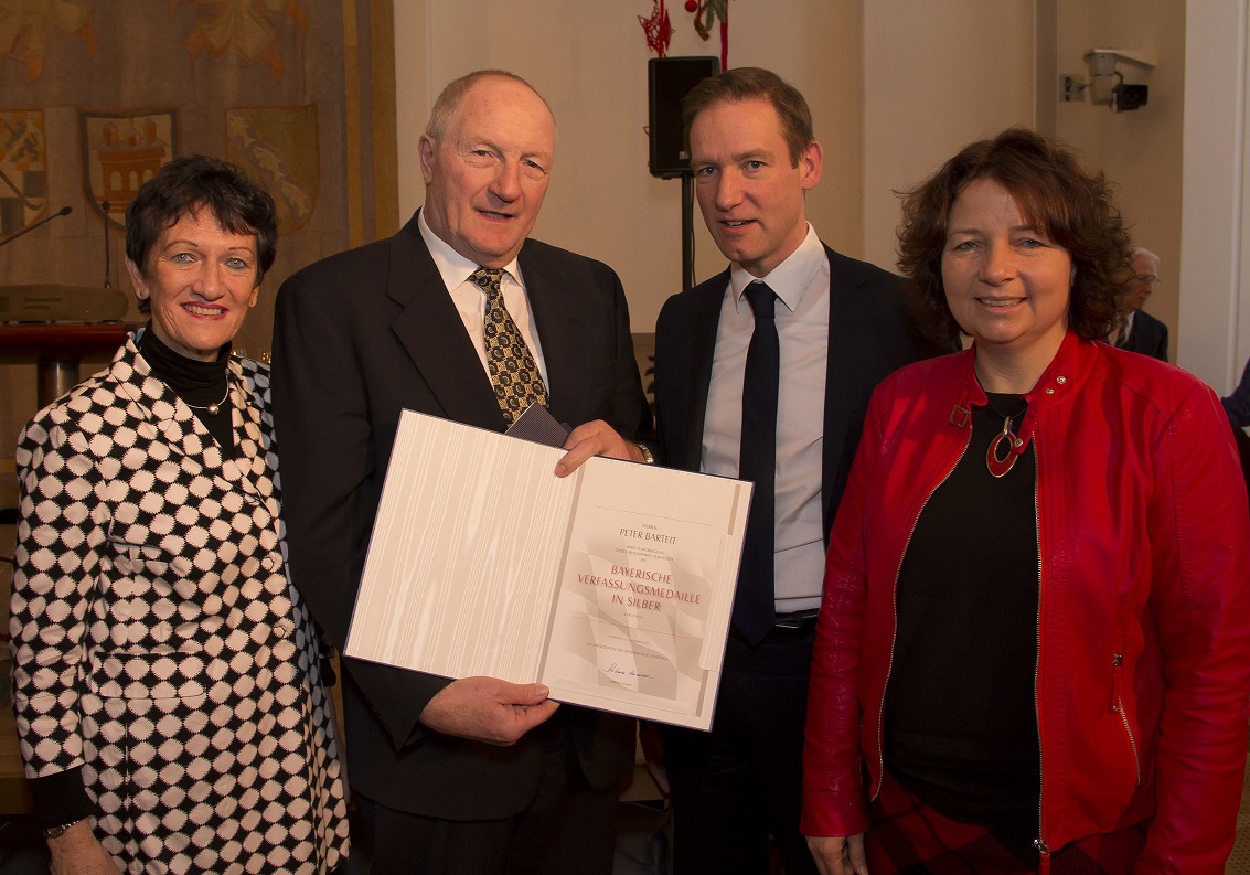 Peter Barteit, geboren am 2. Mai 1946 in Velden, Bundesbahn-Obersekretär und von 1990 bis1996 1. Bürgermeister der Stadt Vilsbiburg wurde von der Landshuter Abgeordneten Ruth Müller für die Verleihung der Verfassungsmedaille vorgeschlagen. „Die Verdienste Peter Barteits im Sinne der Bayerischen Verfassung, insbesondere der Art. 3 „Bayern ist ein Rechts-, Kultur- und Sozialstaat. Er dient dem Gemeinwohl“ und Art. 140 „Kunst und Wissenschaft, das kulturelle Leben und der Sport sind vom Staat und Gemeinden zu fördern.“, sind meiner Meinung nach sehr bedeutend“, so Müller, die insbesondere seine Tätigkeit als Vorsitzenden des Vilsbiburger Heimatmuseums und als Kreisheimatpfleger in ihrer Begründung anführte.