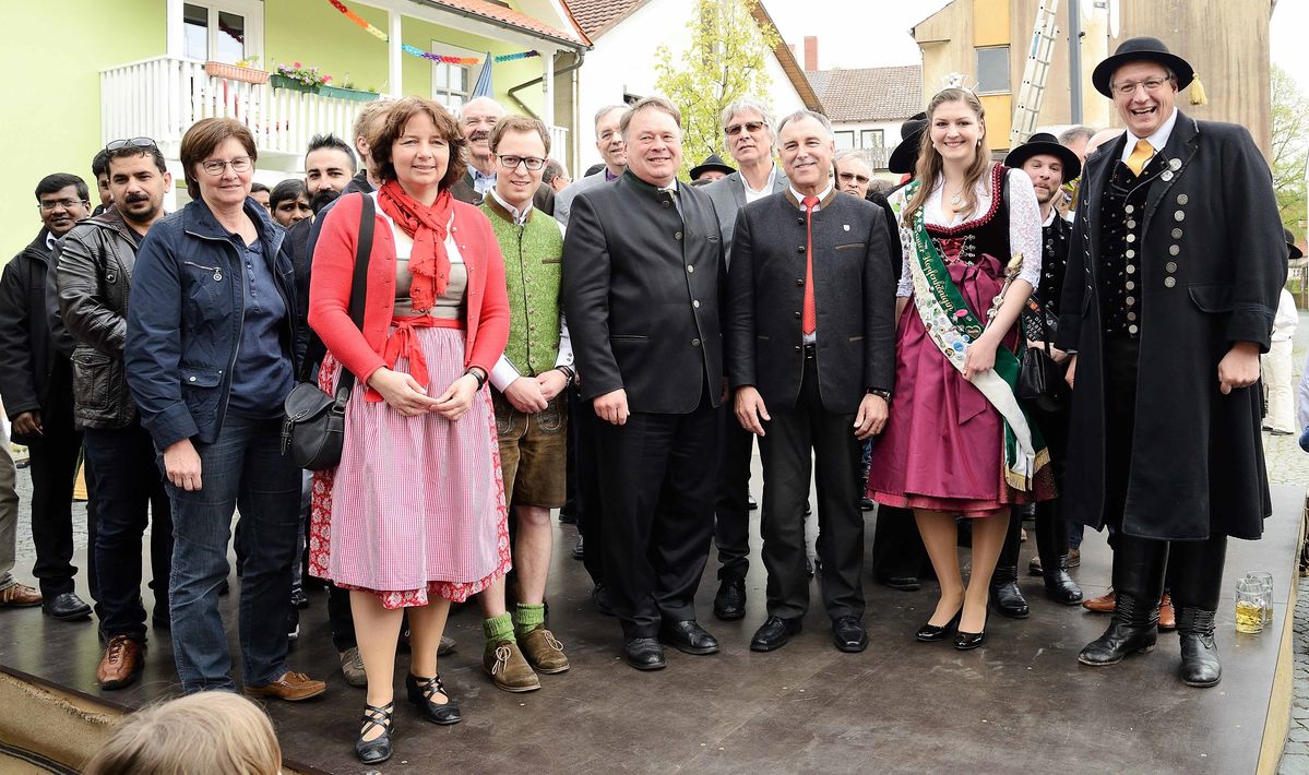Auch die Vielfalt in der politischen Gemeinde der Ortschaft brachte Michael Wensauer zum Ausdruck, indem er neben Bürgermeister Karl Scharf die beiden Landtagsabgeordneten aus Pfeffenhausen Ruth Müller und Florian Hölzl sowie MdB Florian Oßner zu sich bat. Mit Helmut Brunner, der auch ehemaliges KLJB-Mitglied ist, betrat dann abschließend der prominenteste Vertreter des Bündnisses für Toleranz die Bühne. So war diese am Ende voll mit den verschiedensten Menschen, die auf Grund des Maifestes zusammen kommen und zusammen feiern. Eine weitere Besonderheit ist, dass man den Maibaum in Pfeffenhausen auch gerne mit "ei" schreibt, also zum "Mei-Baum" umbenennt. Dies soll zum Ausdruck bringen, dass sich jeder mit seiner Heimat, seinem Verein und der Gemeinschaft des Maibaumes identifiziert und hinter den Aktionen steht. Unabhängig von Herkunft und kulturellem Hintergrund. Staatsminister Brunner lobte die Vielfalt und den Zusammenhalt, den die Bewohner mit ihren Gästen durch den "Maibaum der Toleranz" zum Ausdruck bringen.