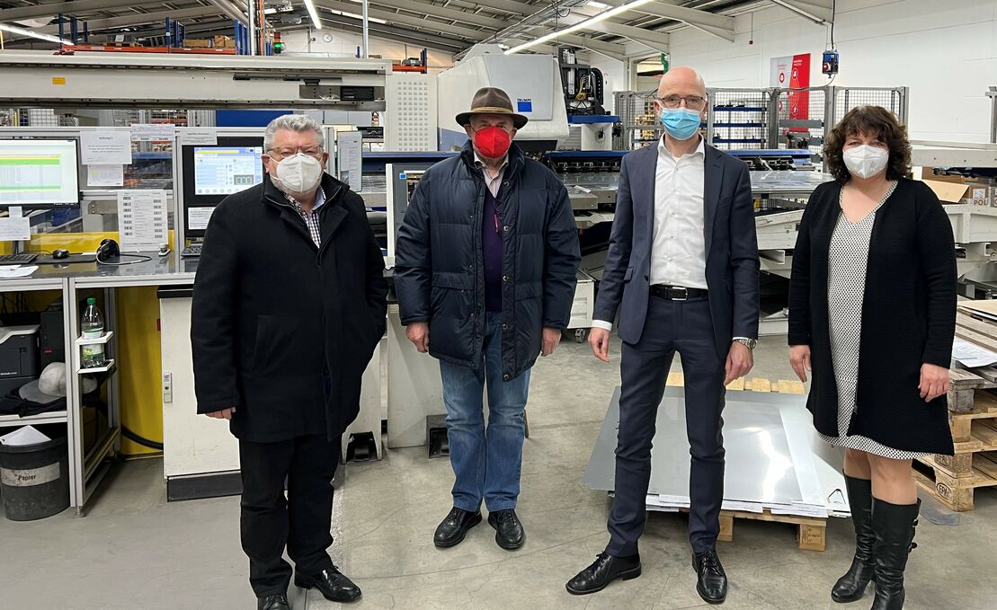 Ruth Müller und die beiden SPD-Stadträte Niedermeier und Fellner im Gespräch mit Firma Wolf GmbH