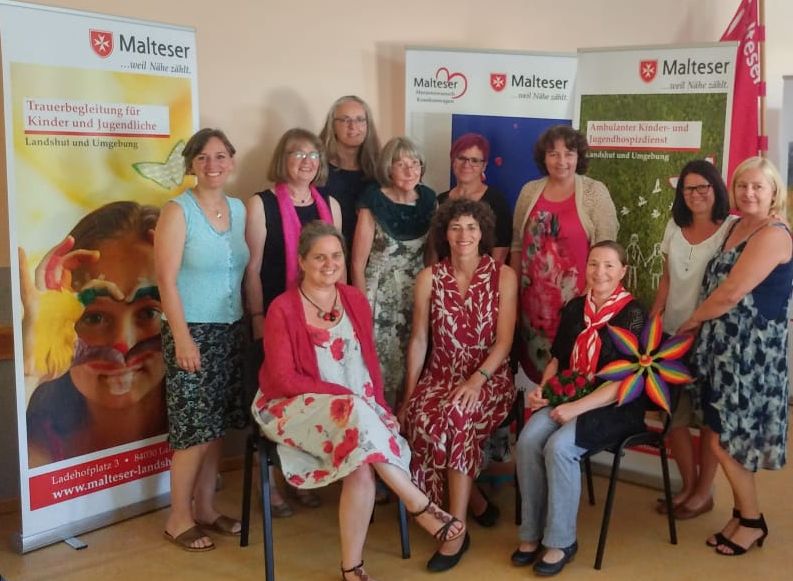 Ende Juni fand die Abschlussfeier des Qualifizierungskurses für die Begleitung sterbender Kinder und Jugendlicher der Malteser statt. Neun Teilnehmerinnen können sich jetzt als Hospizbegleiterinnen für Kinder und Jugendliche bezeichnen. Rebecca Marchese und Stefanie Froehlich vom ambulanten Kinder- und Jugendhospizdienst der Malteser in Landshut und Gräfelfing haben den Kurs gemeinsam gestaltet. Die Ausbildung begann im Januar, beinhaltete acht Wochenenden und umfasste insgesamt 100 Stunden. Dabei ging es unter anderem um die Auseinandersetzung mit der eigenen Endlichkeit, dem Loslassen, aber vor allem auch um die Wünsche und Bedürfnisse Sterbender. Die Teilnehmerinnen bekamen einen Einblick in die spirituellen Grundlagen der Begleitung, der Trauer und der Bandbreite an Trauerreaktionen. Sie lernten Hilfsangebote für betroffene Familien kennen und bekamen Grundlagen der Kommunikation und Gesprächsführung beigebracht. Erfahrungsberichte von bereits aktiven Hospizbegleiterinnen und Begleitern ergänzten die Ausbildung. Darüber hinaus absolvierten die Teilnehmerinnen eine Helfergrundausbildung mit dem Kurs „Erste Hilfe am Kind“. Jede einzelne frisch gebackene Hospizbegleiterin hat ihre ganz eigene Motivation, sich dieser anspruchsvollen Aufgabe zu stellen. Sie alle wollen Familien unterstützen. Die Situationen können dabei entweder sein, dass ein Kind lebensverkürzend erkrankt ist, oder ein Elternteil sich in einer palliativen Situation befindet. Schirmherrin des Dienstes ist die Landtagsabgeordnete Ruth Müller (SPD). Sie meint: „Die Unterstützung der Familien mit einem lebensverkürzend erkrankten Kind ist so wertvoll, denn niemand sollte in dieser Situation allein sein.“ Die Leiterin des Kinder- und Jugendhospizdienstes Landshut, Rebecca Marchese, blickt zufrieden auf das letzte halbe Jahr zurück: „Es war spannend, wie mitzuerleben, wie die Teilnehmerinnen sich im letzten halben Jahr weiterentwickelt haben. Ich wünsche allen tolle und bereichernde Begleitungen und bedanke mich, dass sie sich für so einen wichtigen Dienst engagieren wollen.“ Stefanie Froehlich von den Maltesern Gräfelfing formuliert es so: „Was es zur Hospizbegleitung braucht, ist ein großes Herz, und das tragt ihr alle in euch.“ Derzeit begleitet der Kinder- und Jugendhospizdienst Landshut acht Familien. Seit Kurzem gibt es auch eine Trauergruppe für Kinder und Jugendliche, die eine geliebte Person verloren haben.