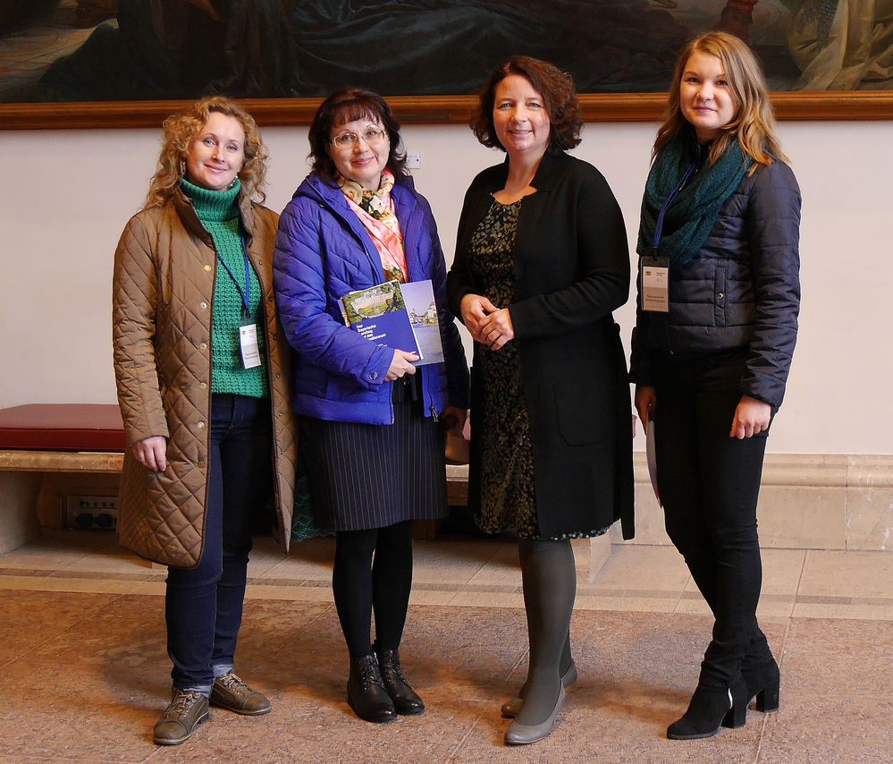 Bildunterschrift: Im Bayerischen Landtag: Die Landshuter Abgeordnete Ruth Müller (2.v.re) mit der Studentin Eugenia Fomina (re.) und den Lehrerinnen Yuliya Kudasheva (li.) und Nina Khodakova (2.v.li)